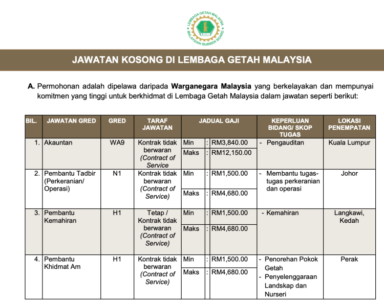Tawaran Jawatan Kosong Lembaga Getah Malaysia Dibuka Buat Lepasan SPM & Graduan