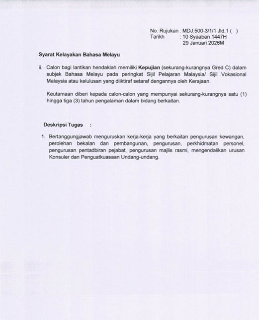 | Tarikh Jawatan Diiklankan | 01 Februari 2026 |
