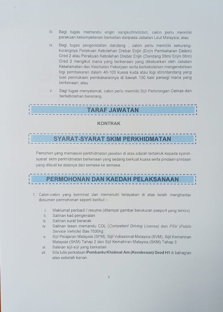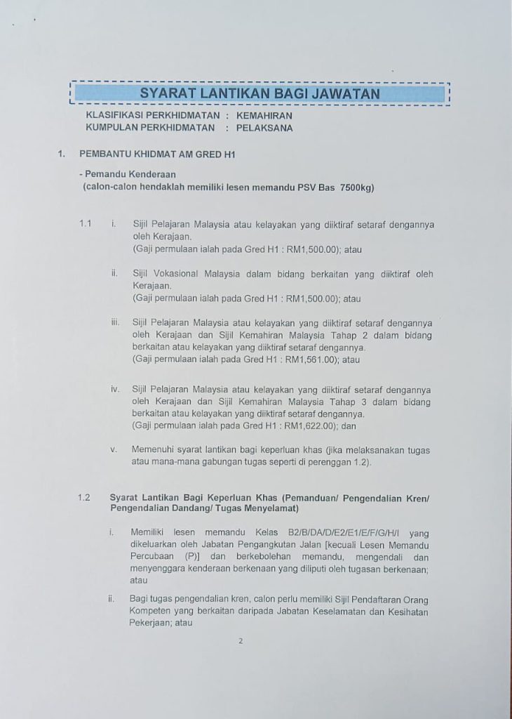 “Pembantu Khidmat Am (Kenderaan) Gred H1”
