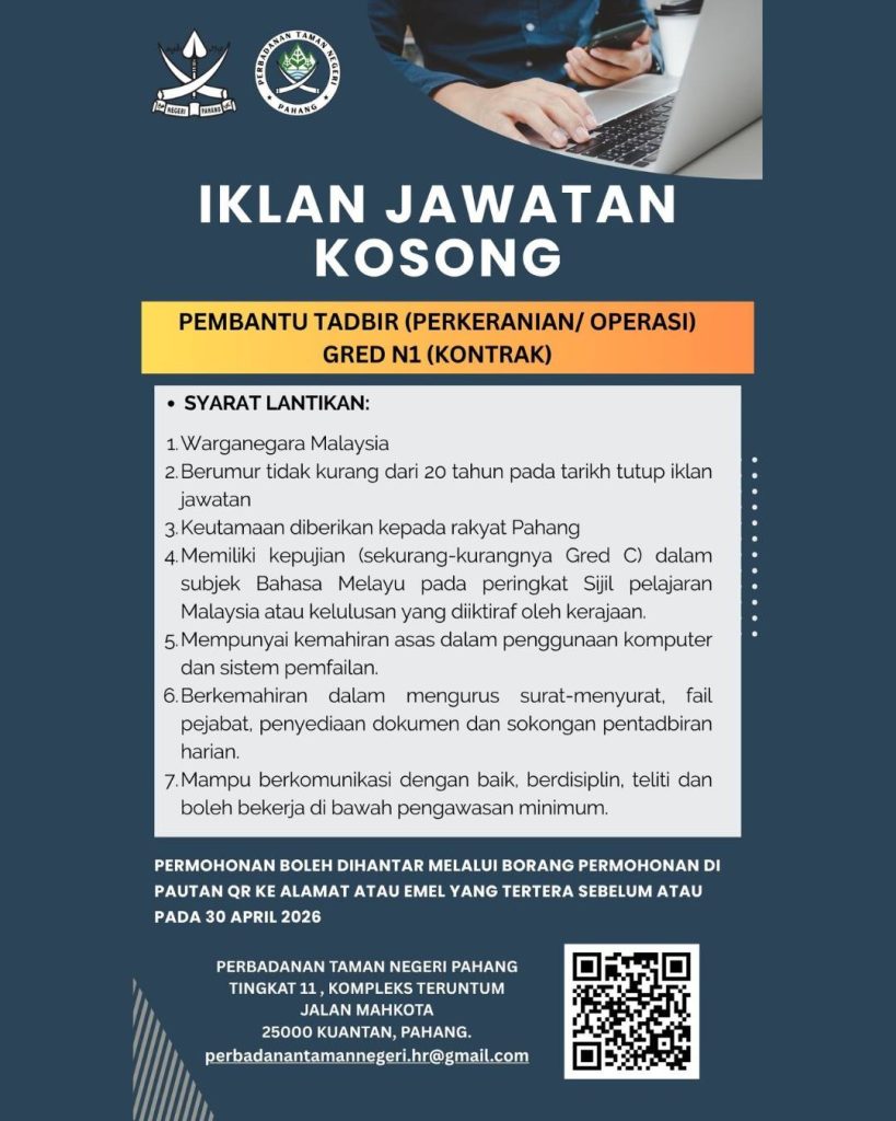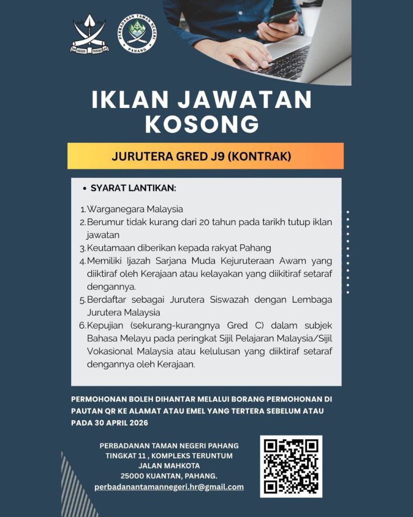 Lebih menarik, keutamaan diberikan kepada rakyat Pahang, menjadikan peluang ini lebih terbuka kepada calon tempatan yang ingin berkhidmat di negeri sendiri.
