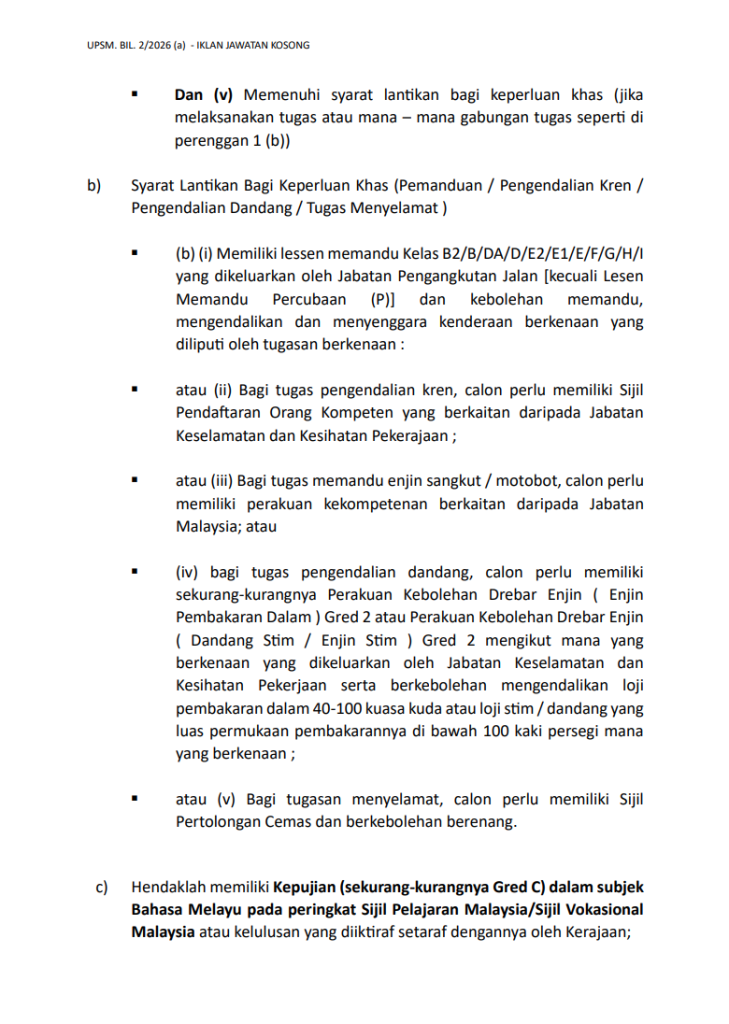 - Mempunyai sijil berkaitan (jika diperlukan)