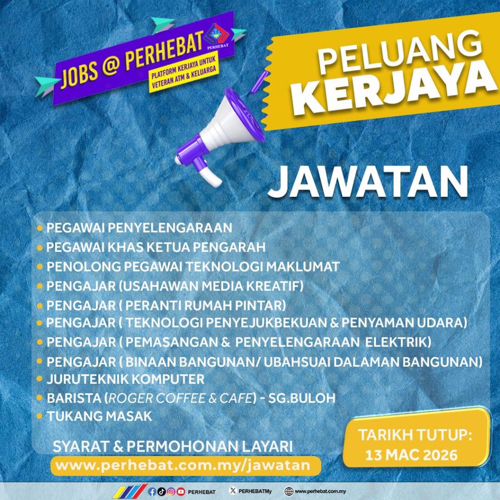 Jika anda memenuhi syarat kelayakan dan berminat dengan mana-mana jawatan yang ditawarkan, pastikan anda membuat permohonan sebelum 13 Mac 2026. Jangan lepaskan peluang ini untuk membina masa depan kerjaya yang lebih baik.