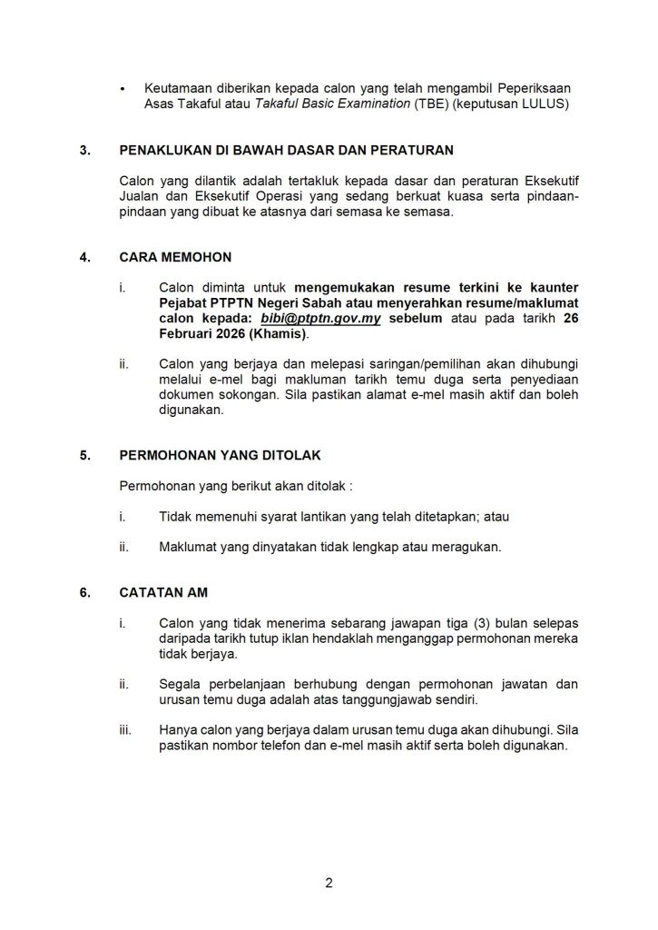 - Penempatan: Pejabat PTPTN Negeri (PPN) Sabah