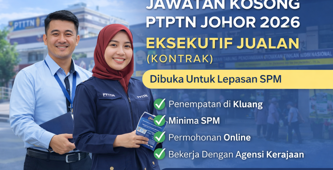 Berita baik buat pencari kerja di Negeri Johor, khususnya lepasan SPM yang sedang mencari peluang kerja dalam sektor agensi kerajaan. Perbadanan Tabung Pendidikan Tinggi Nasional (PTPTN) kini membuka peluang kerjaya sebagai Eksekutif Jualan (Kontrak) di bawah Pejabat PTPTN Negeri Johor bagi tahun 2026.
