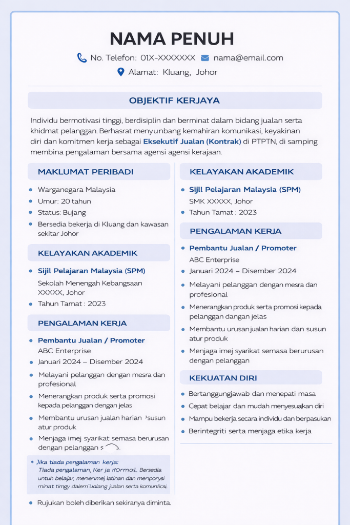 Jawatan Eksekutif Jualan (Kontrak) di PTPTN Negeri Johor ini merupakan peluang baik untuk lepasan SPM dan pencari kerja yang berminat dalam bidang jualan serta ingin menimba pengalaman bersama agensi kerajaan. Jika anda berada di Johor atau sekitar Kluang, ini antara peluang yang wajar anda rebut sebelum tarikh tutup.