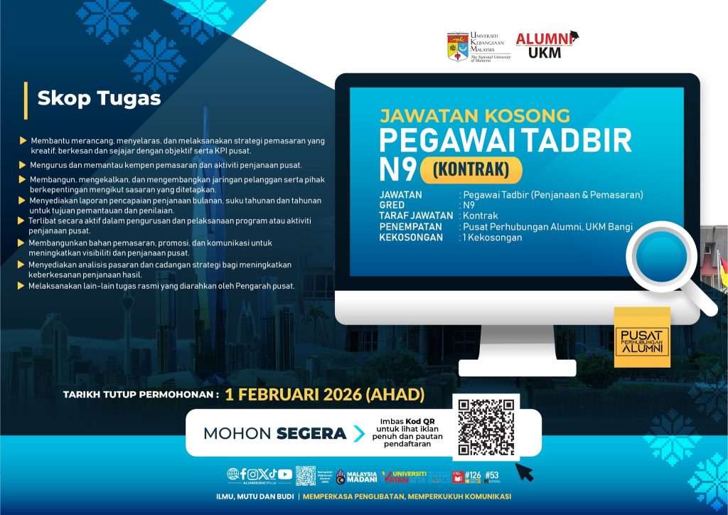 Jawatan Kosong UKM – Pusat Perhubungan Alumni UKM Bangi (Kontrak)