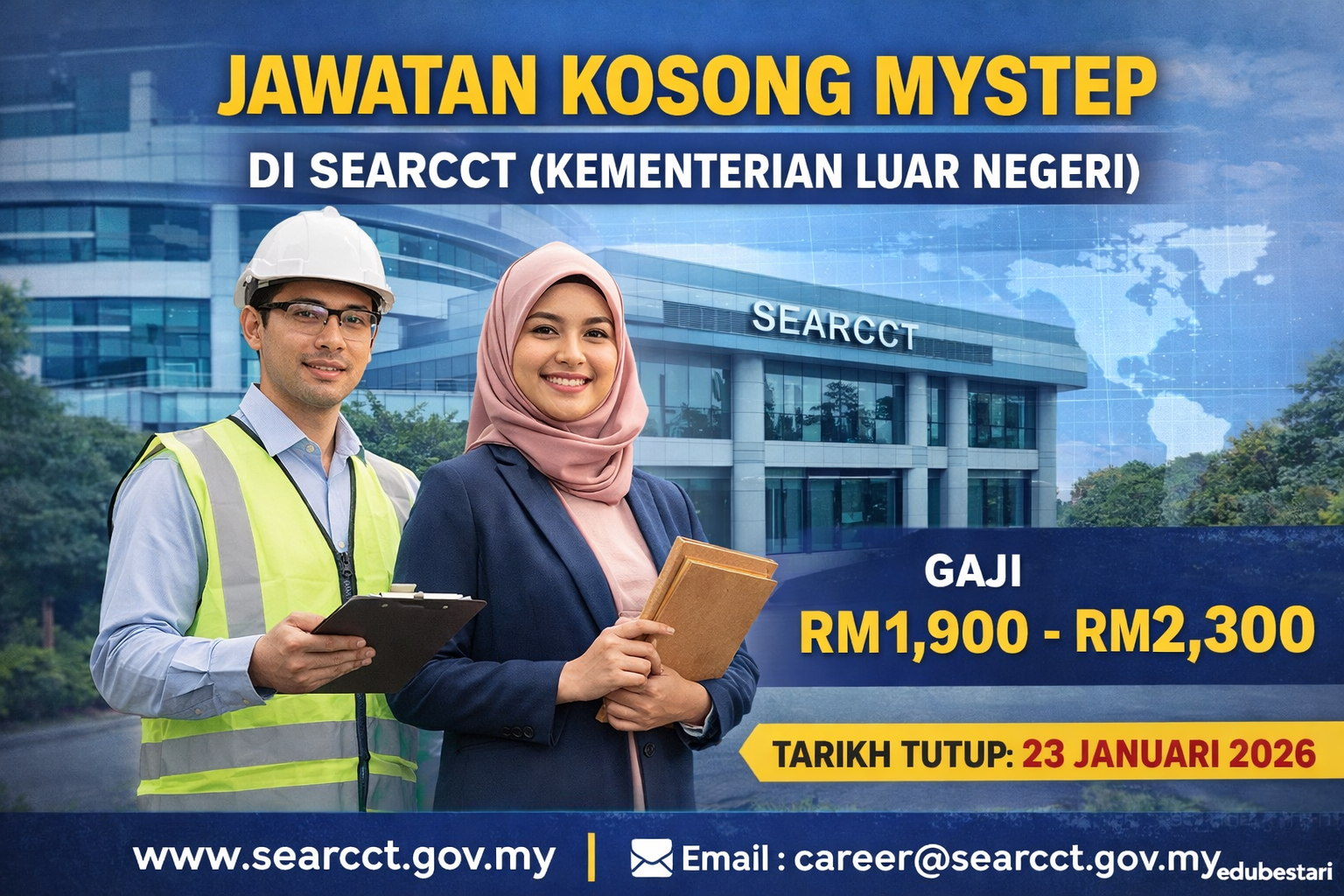 Jawatan Personel MySTEP di SEARCCT merupakan peluang kerjaya yang baik untuk calon berkelayakan yang ingin membina pengalaman kerja dalam sektor kerajaan dan antarabangsa. Dengan hanya satu kekosongan ditawarkan, calon yang berminat disarankan memohon segera sebelum 23 Januari 2026.
