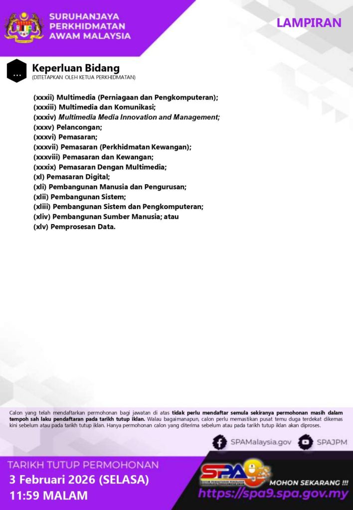 ๐ Tarikh tutup permohonan: 3 Februari 2026 (Selasa), 11:59 malam