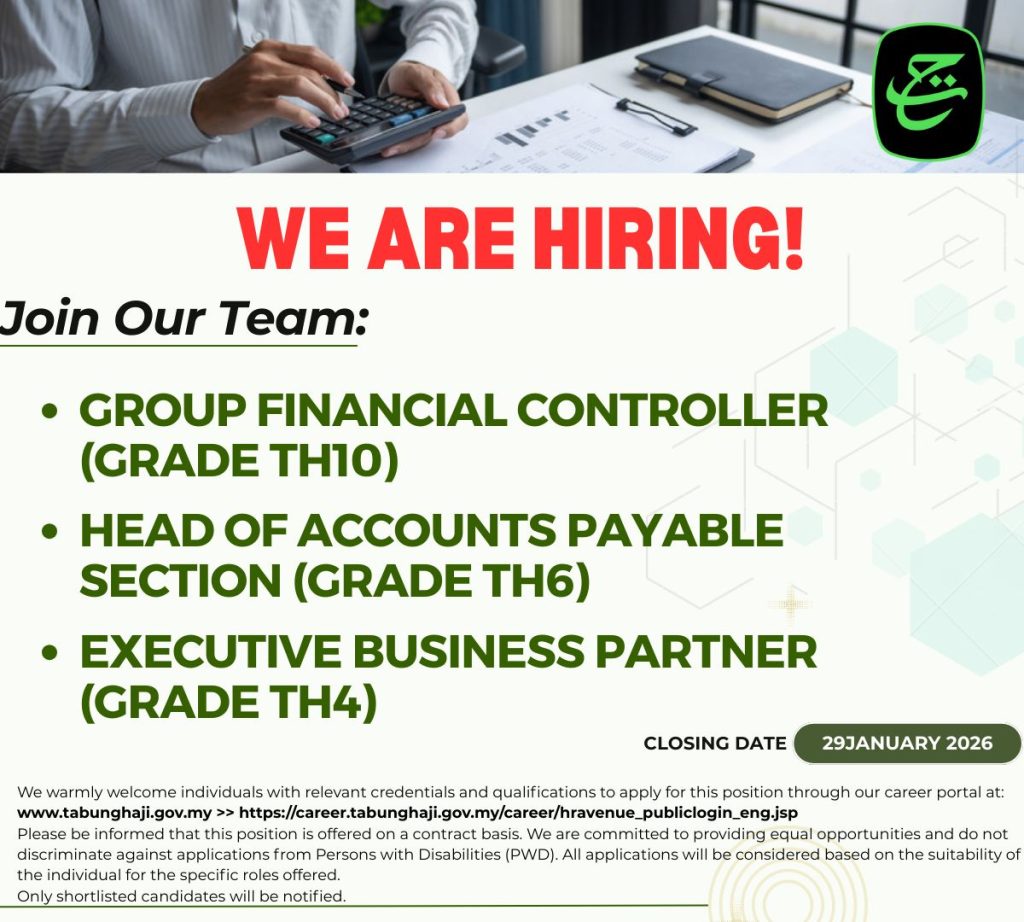 Lembaga Tabung Haji (TH) membuka peluang kerjaya kepada calon yang mempunyai kelayakan dan pengalaman berkaitan untuk mengisi beberapa jawatan di peringkat negeri dan organisasi. Semua jawatan yang diiklankan adalah berasaskan kontrak dan permohonan perlu dibuat melalui portal kerjaya rasmi Tabung Haji.