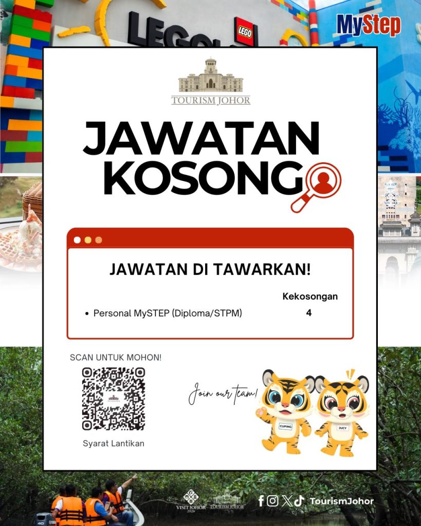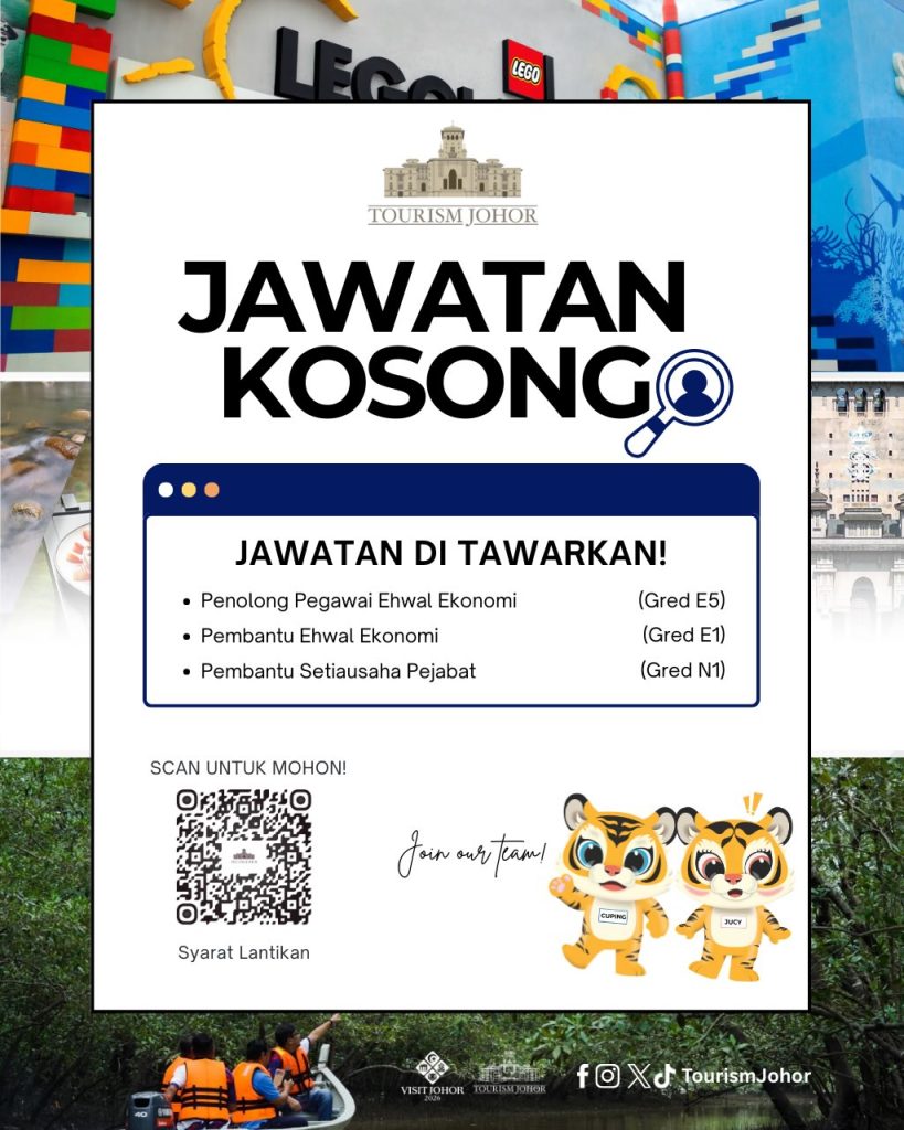Berita baik kepada pencari kerja di Johor. Tourism Johor kini membuka peluang kerjaya bagi beberapa jawatan strategik termasuk lantikan gred tetap/kontrak serta pengambilan di bawah program MySTEP 2026.