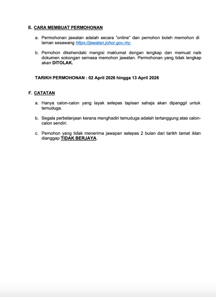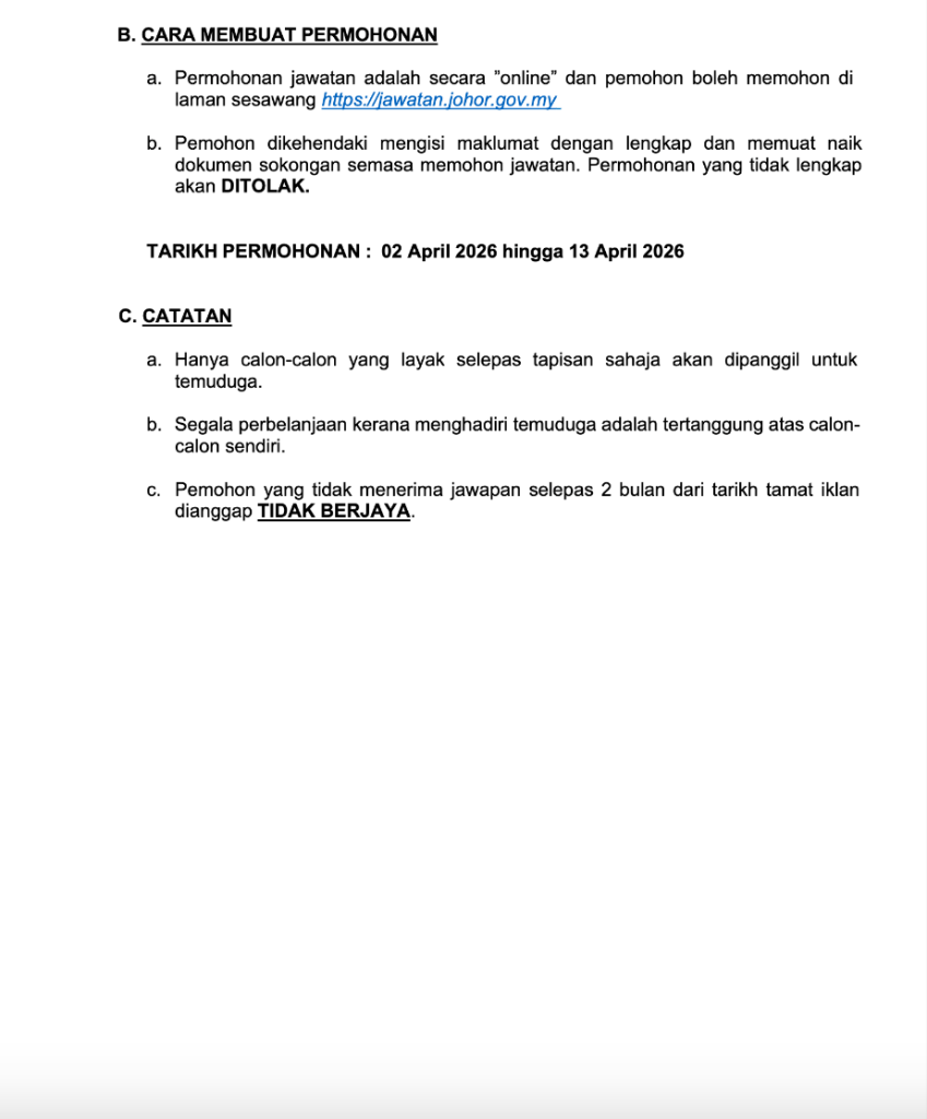 | Tarikh Mohon | 02 April – 13 April 2026 |