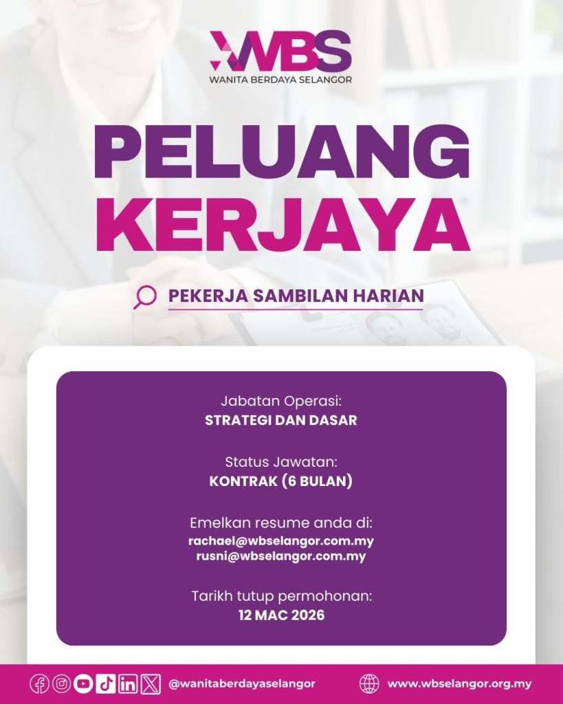 Jawatan Kosong Wanita Berdaya Selangor (WBS) 2026 – Peluang Pekerja Sambilan Harian Dibuka