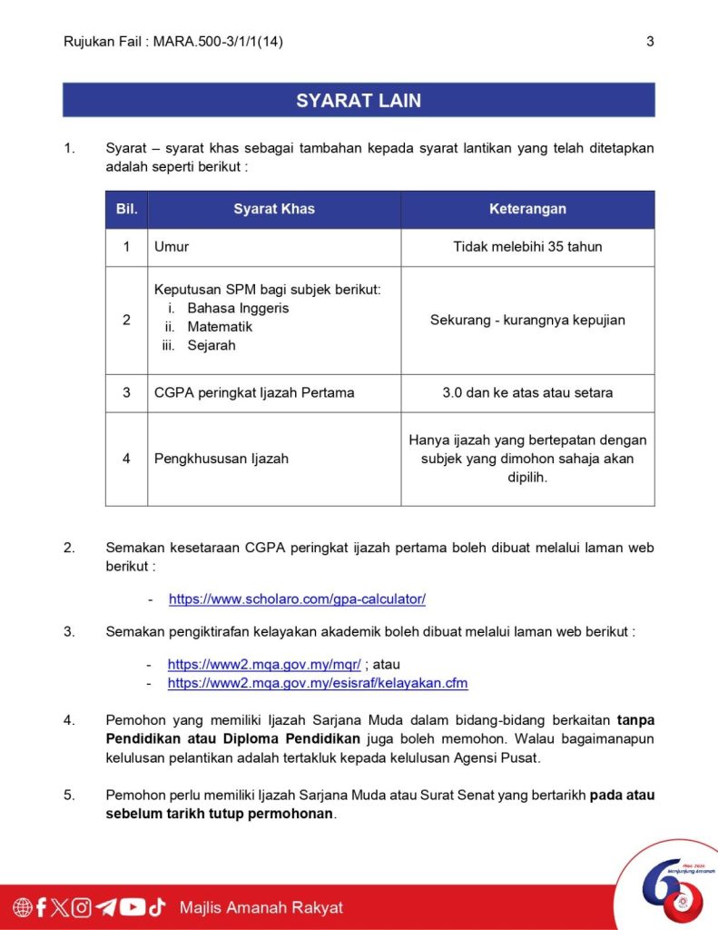 Berita baik kepada graduan pendidikan dan calon yang berminat membina kerjaya dalam sektor pendidikan! Majlis Amanah Rakyat (MARA) kini membuka permohonan jawatan Pegawai Perkhidmatan Pendidikan (Gred DG9) bagi tahun 2026.