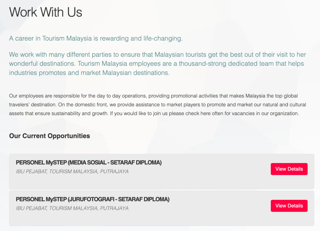 | Portal Rasmi | https://www.tourism.gov.my/careers |