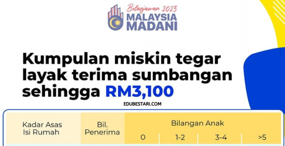 – Kumpulan miskin tegar layak terima sumbangan sehingga maksimum RM3,100