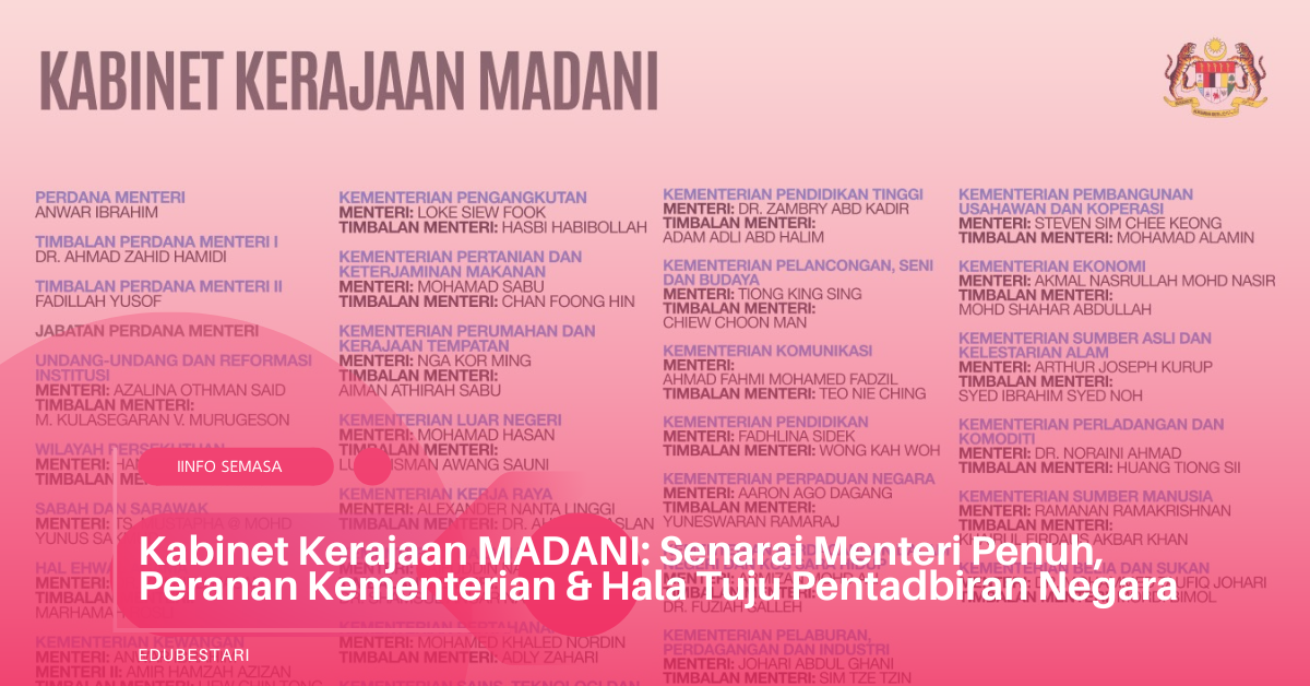 Kabinet Kerajaan MADANI: Senarai Menteri Penuh, Peranan Kementerian & Hala Tuju Pentadbiran Negara