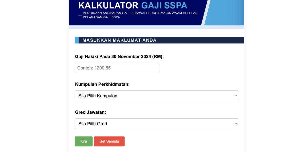 Langkah-Langkah Menggunakan Kalkulator Gaji SSPA Online