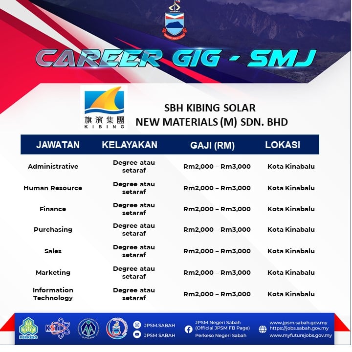 Panggilan buat graduan yang masih menganggur di Negeri Sabah! Jabatan Pembangunan Sumber Manusia (JPSM) dan PERKESO Negeri Sabah akan mengadakan temuduga terbuka secara fizikal bagi membantu graduan dan pencari kerja mendapatkan peluang pekerjaan dan mengisi pelbagai kekosongan jawatan yang ditawarkan oleh pelbagai majikan.