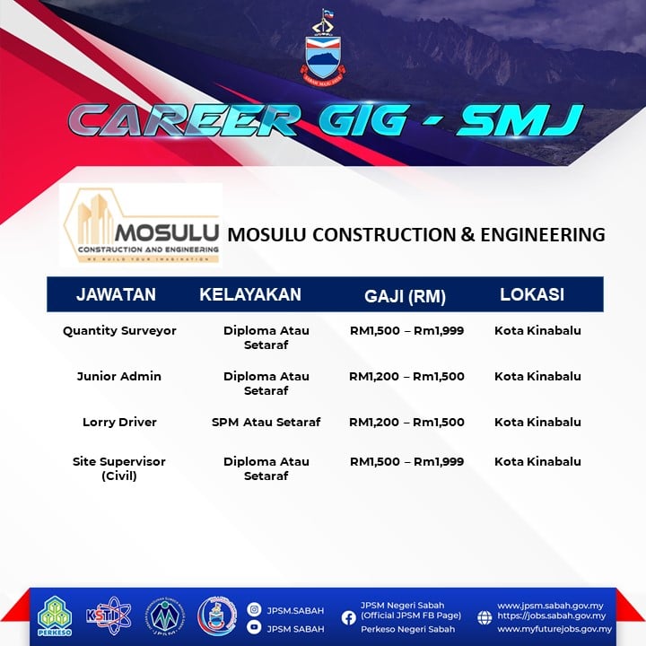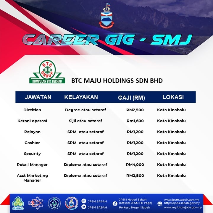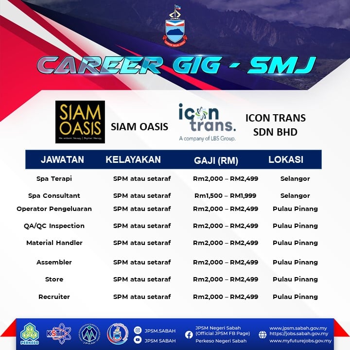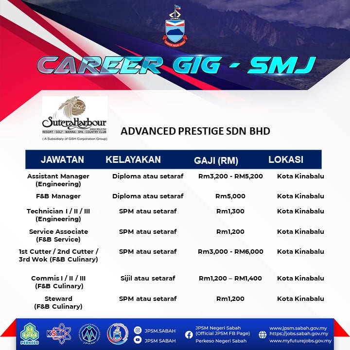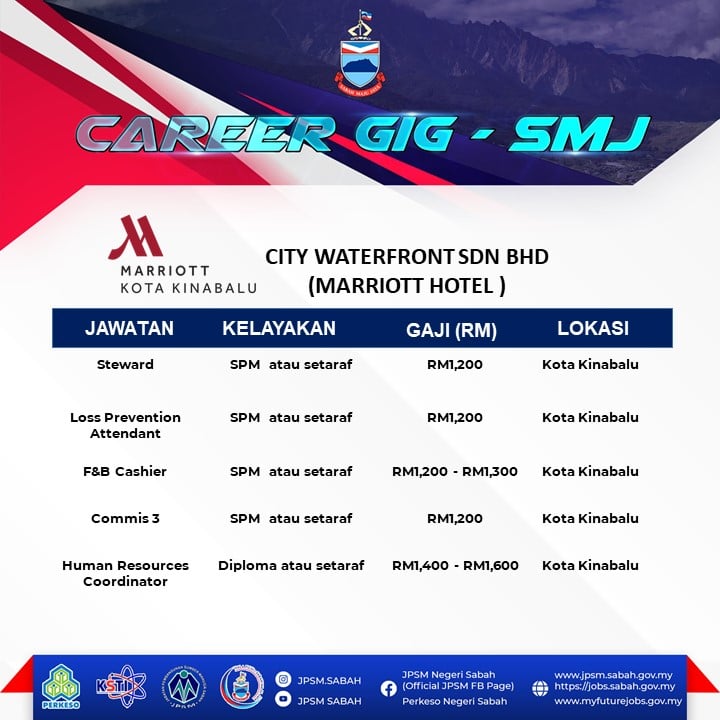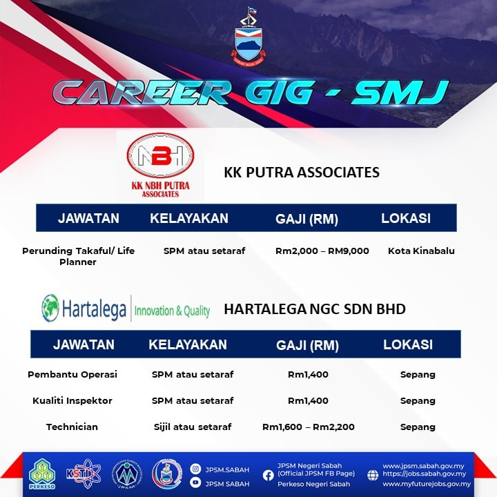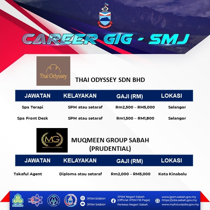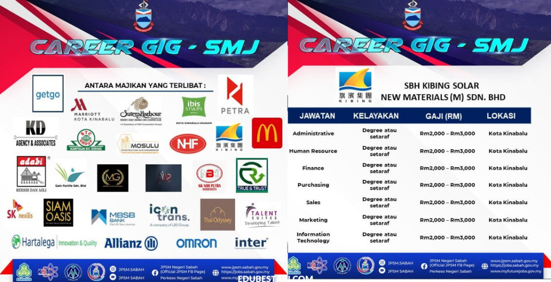 Pencari kerja yang berminat nak ikuti Karnival Pekerjaan Sempena Hari terbuka Sabah Maju Jaya ini boleh buat pendaftaran sebelum tarikh temuduga. Pelbagai peluang pekerjaan ditawarkan oleh pelbagai majikan syarikat terkemuka.