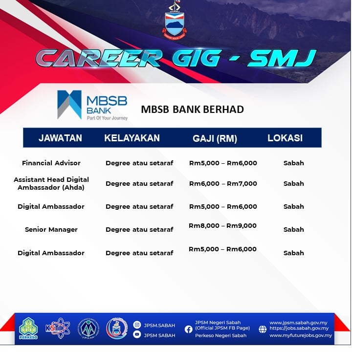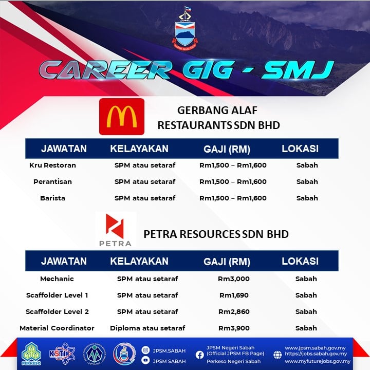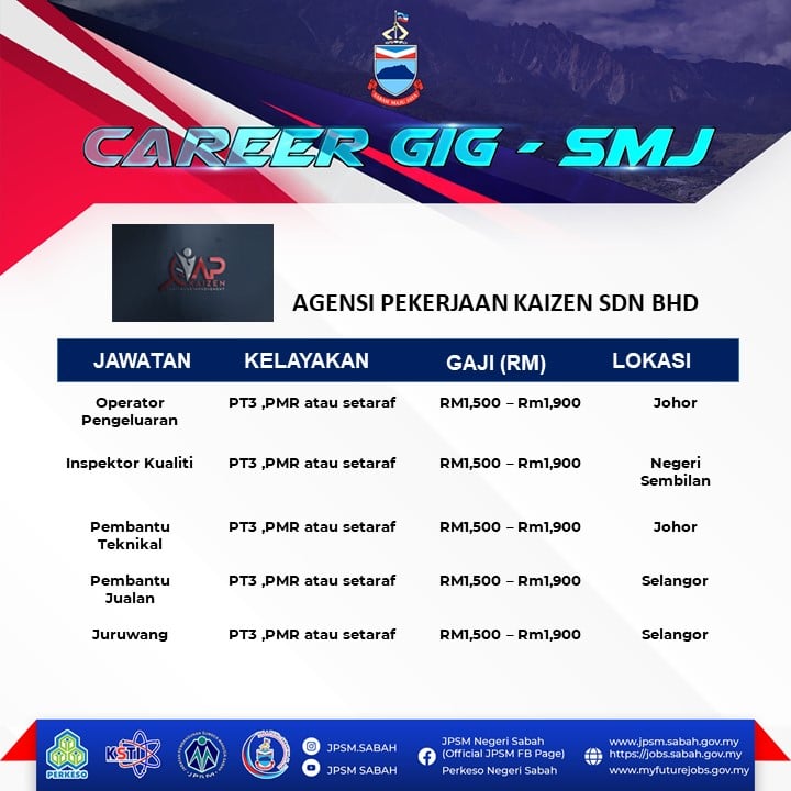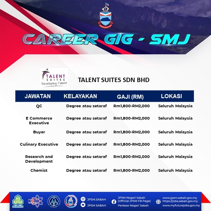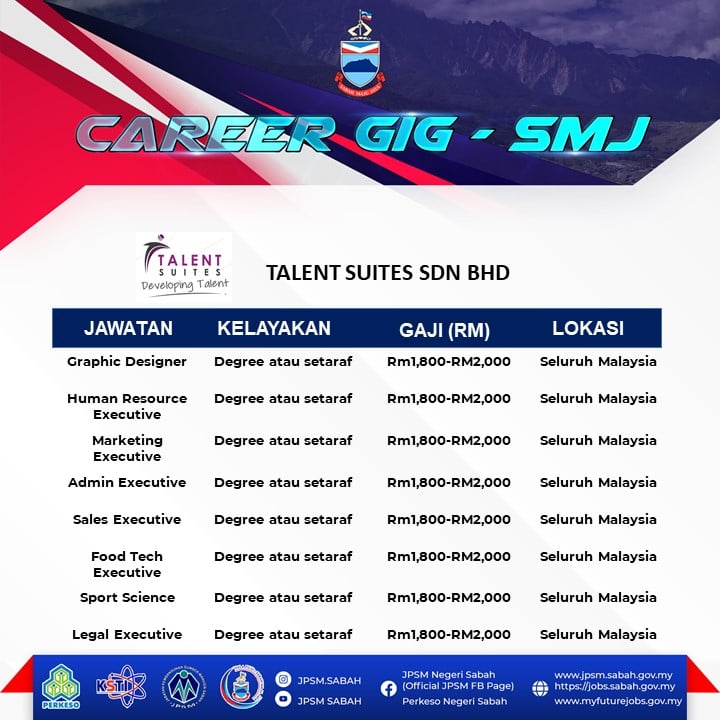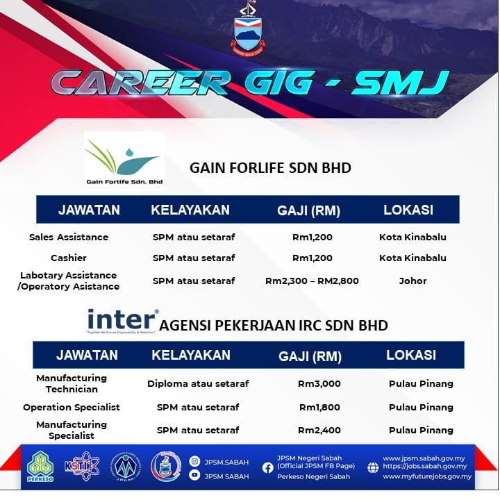 Panggilan buat graduan yang masih menganggur di Negeri Sabah! Jabatan Pembangunan Sumber Manusia (JPSM) dan PERKESO Negeri Sabah akan mengadakan temuduga terbuka secara fizikal bagi membantu graduan dan pencari kerja mendapatkan peluang pekerjaan dan mengisi pelbagai kekosongan jawatan yang ditawarkan oleh pelbagai majikan.