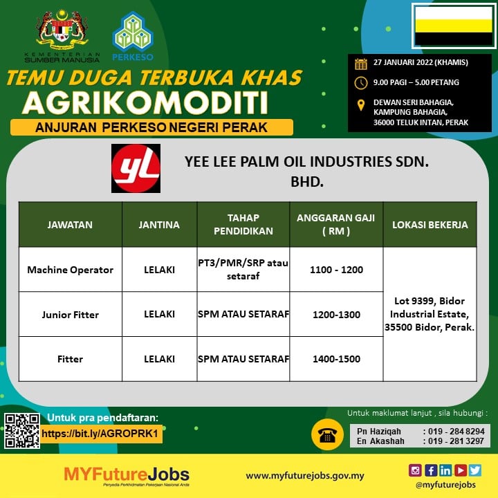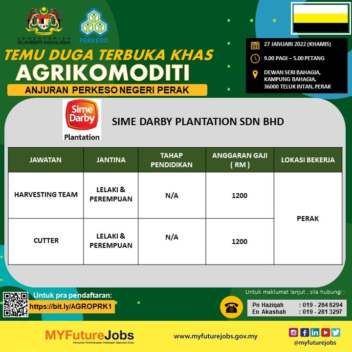 Kementerian Perusahaan Perladangan dan Komoditi memberi peluang kepada pencari kerja di luar sana untuk hadiri temuduga terbuka secara fizikal dengan pelaksanaan Karnival Kerjaya Agrikomoditi pada 27 Januari 2022 (Khamis) nanti. Lebih 100 kekosongan jawatan ditawarkan kepada warganegara Malaysia.