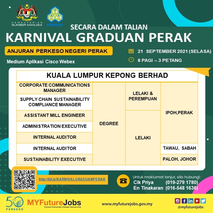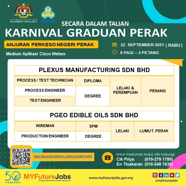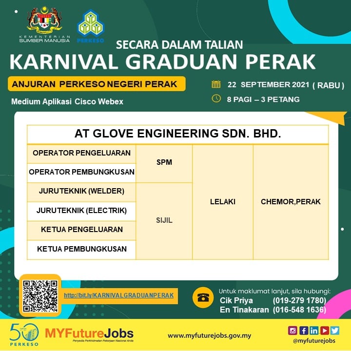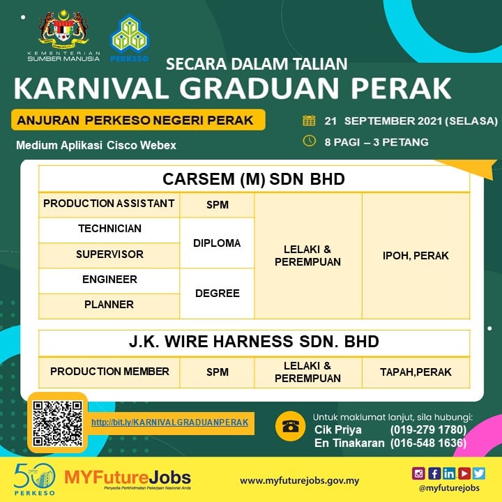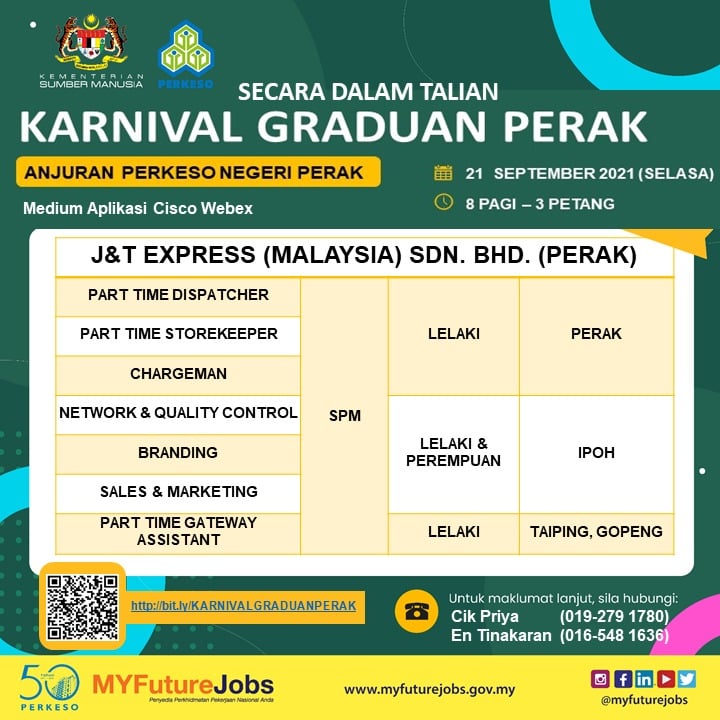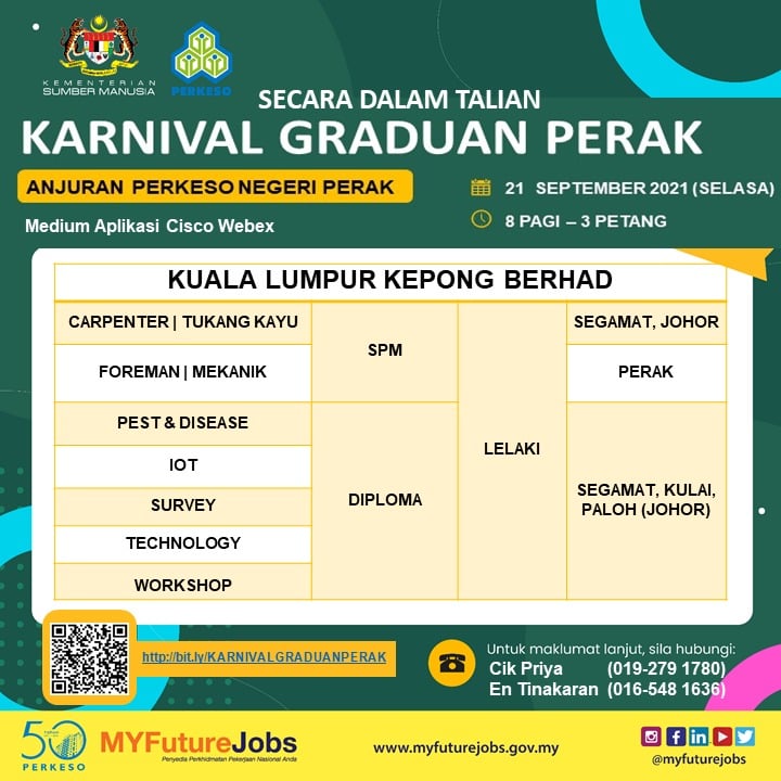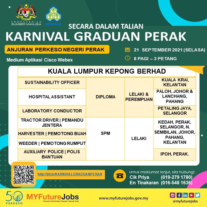 Paggilan buat graduan yang masih menganggur di negeri Perak! Pihak PERKESO Negeri Perak akan mengadakan Karnival Graduan Negeri Perak secara atas talian bagi membantu graduan mendapatkan peluang pekerjaan dan mengisi pelbagai kekosongan jawatan yang ditawarkan oleh pelbagai majikan.