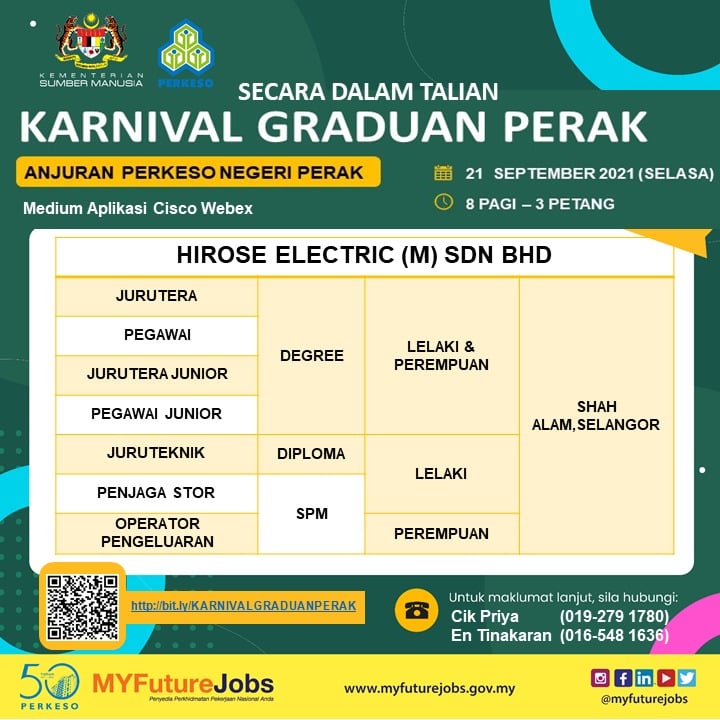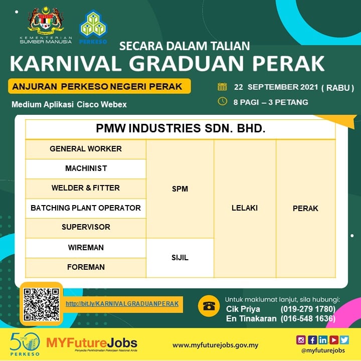 Untuk maklumat lanjut atau sebarang pertanyaan, anda boleh hubungi Cik Priya di talian 019 279 1780 atau En  Tinakaran di talian 016 548 1636.