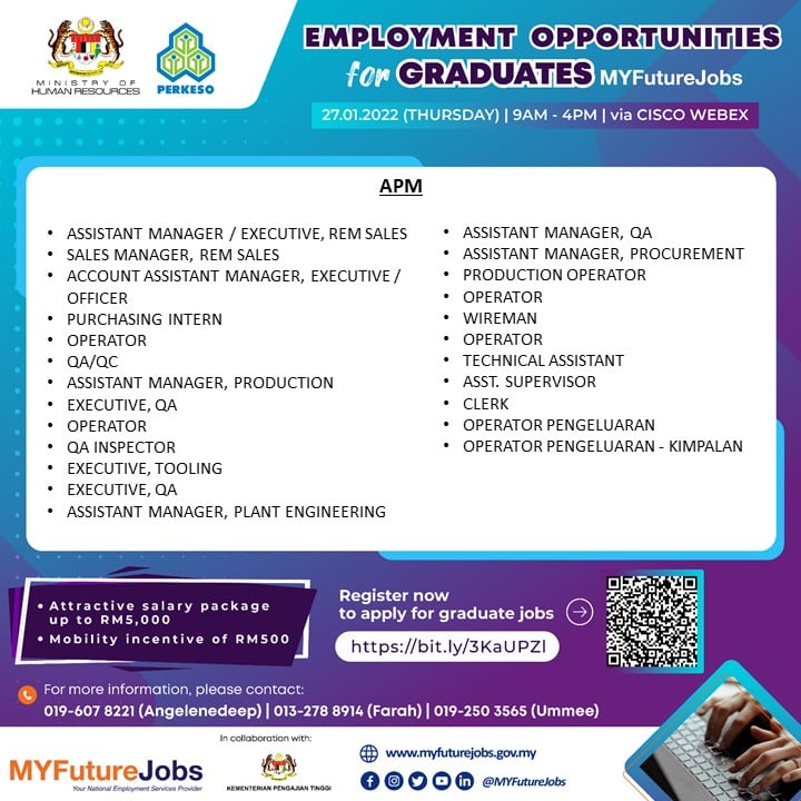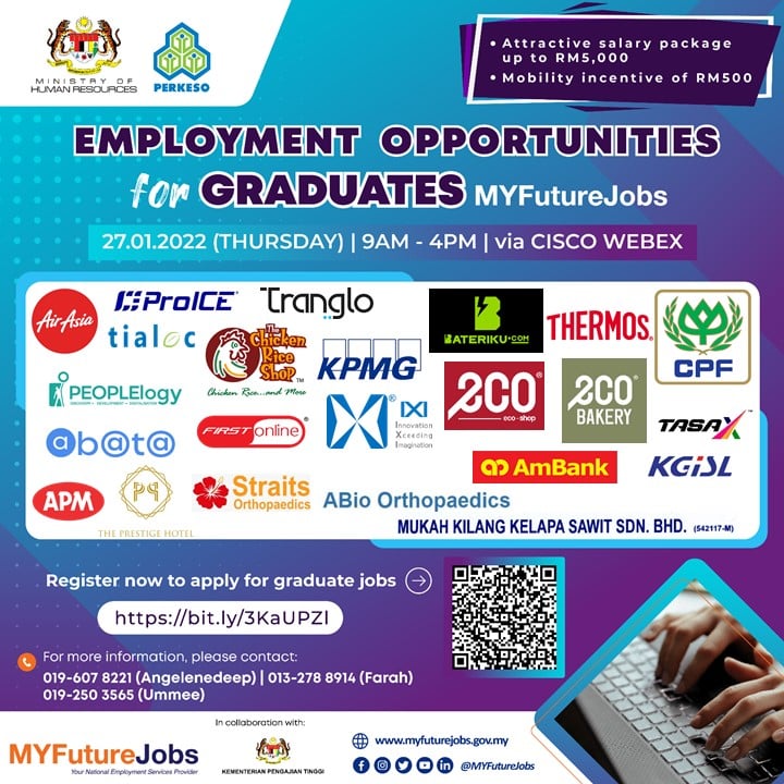 Pencari kerja yang berminat nak ikuti “EMPLOYMENT OPPORTUNITIES FOR GRADUATES MYFUTUREJOBS” ini boleh buat pendaftaran pada tarikh temuduga. Pelbagai peluang pekerjaan ditawarkan oleh pelbagai majikan syarikat terkemuka.