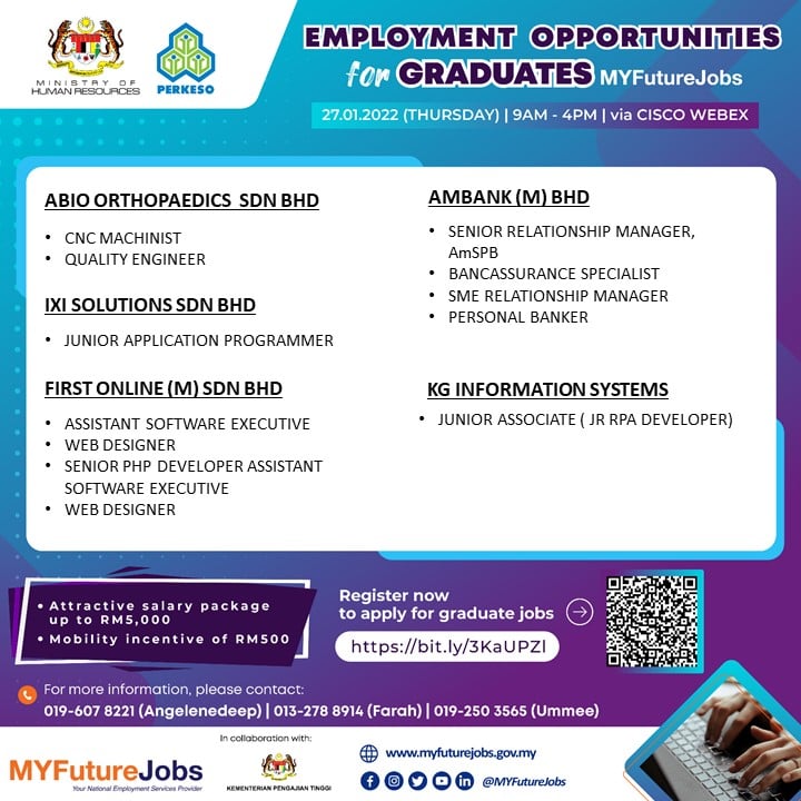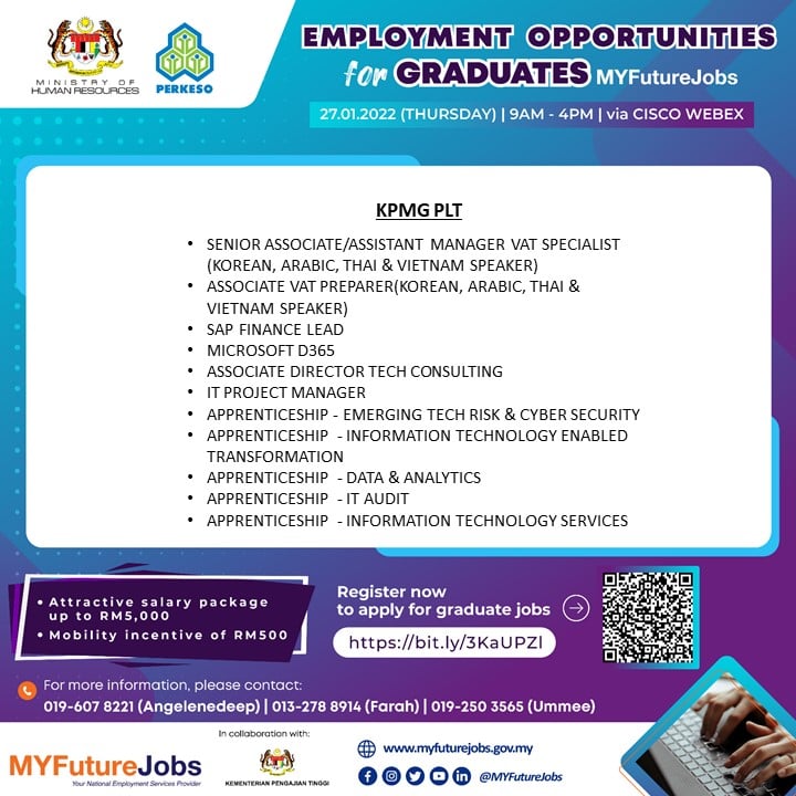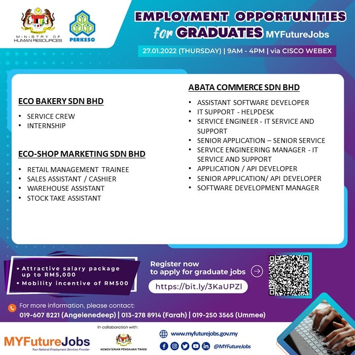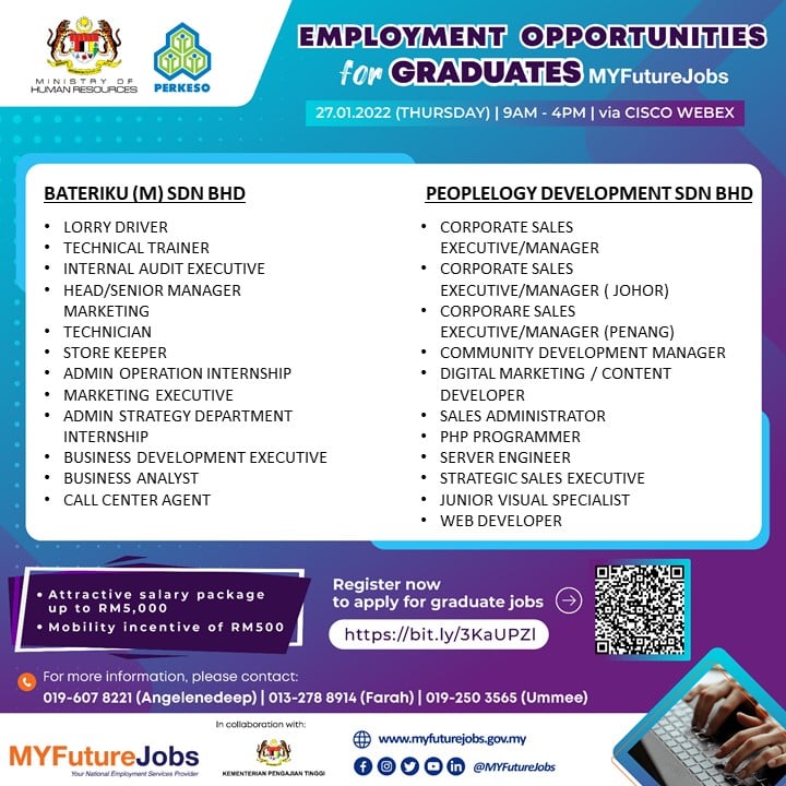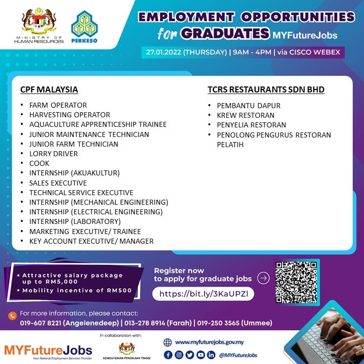 Ikuti perkongsian di bawah untuk maklumat lanjut kerja yang ditawarkan dan cara buat pra-pendaftaran