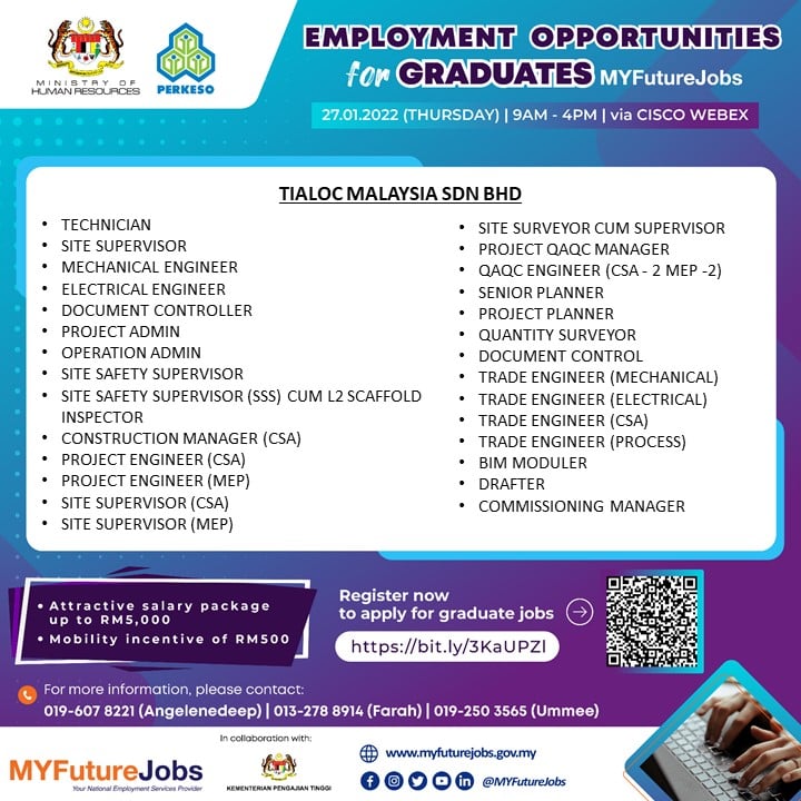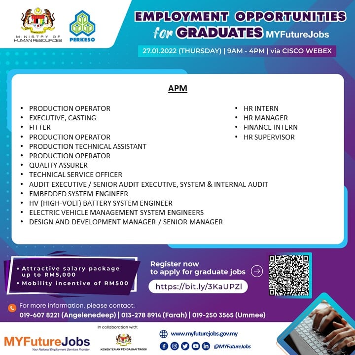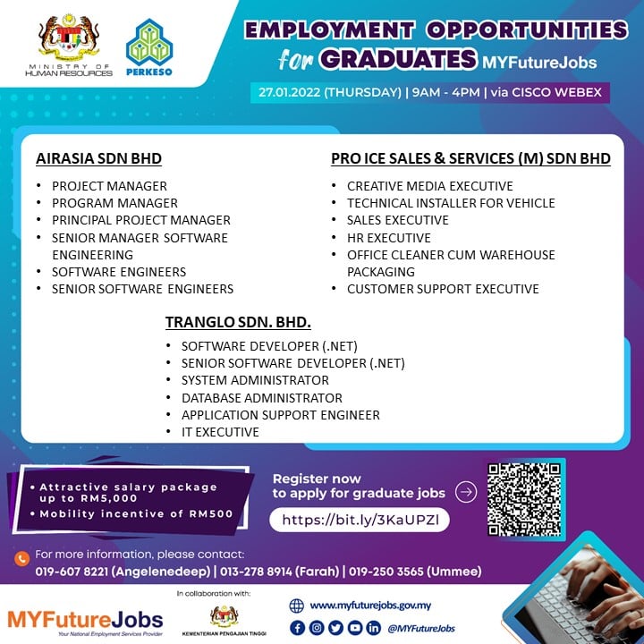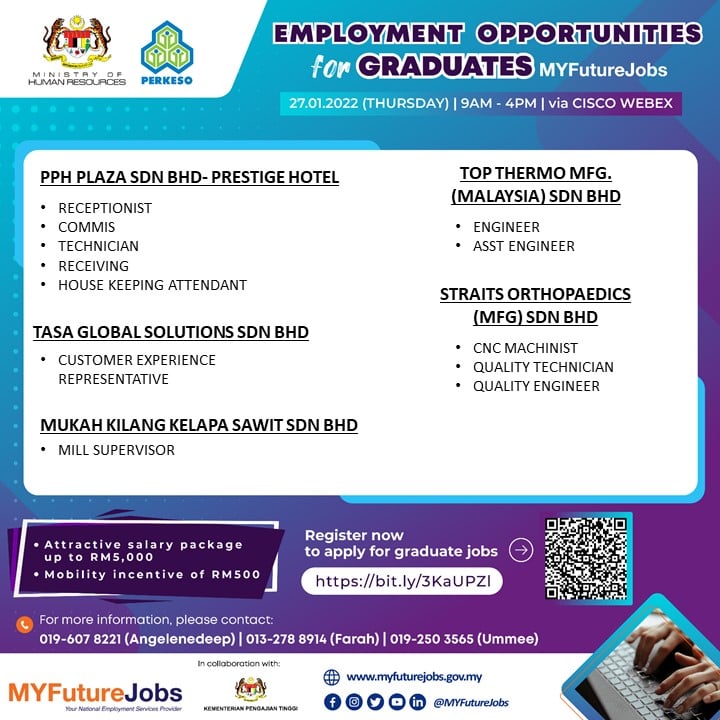 Pencari kerja yang berminat nak ikuti “EMPLOYMENT OPPORTUNITIES FOR GRADUATES MYFUTUREJOBS” ini boleh buat pendaftaran pada tarikh temuduga. Pelbagai peluang pekerjaan ditawarkan oleh pelbagai majikan syarikat terkemuka.