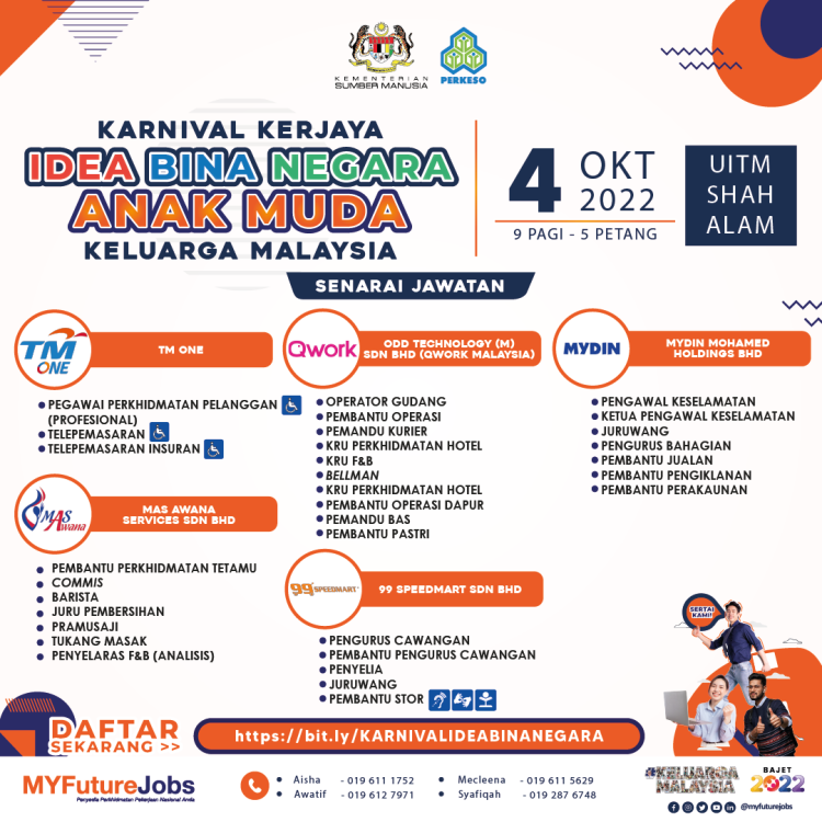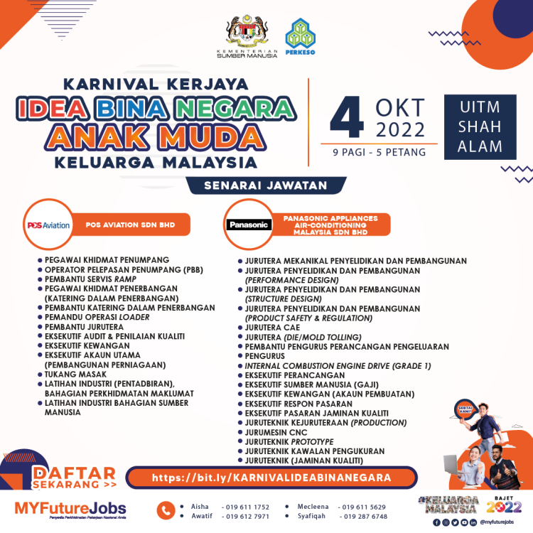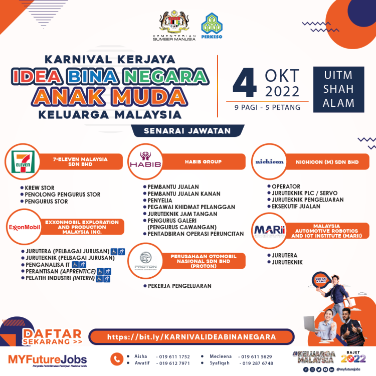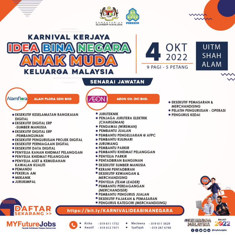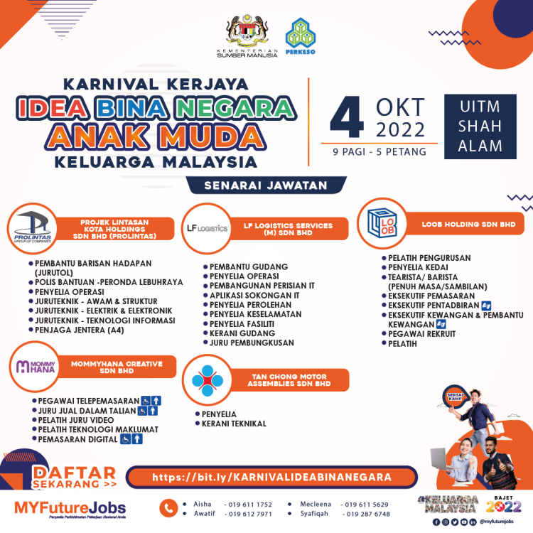 Tawaran Pelbagai Jawatan Di Karnival Kerjaya Idea Bina Negara Anak Muda Keluarga Malaysia