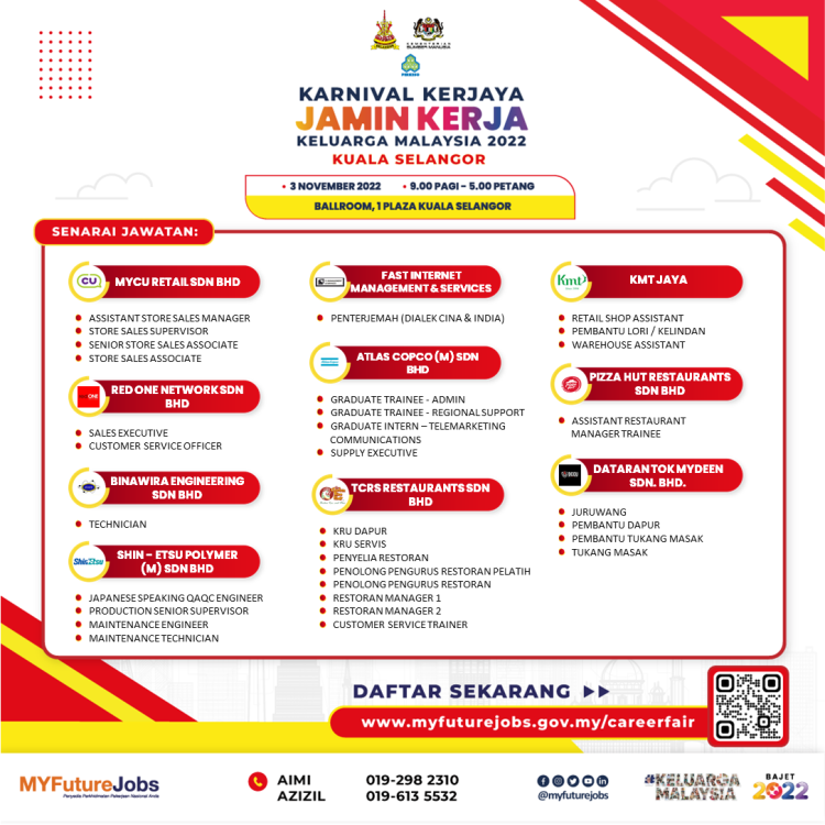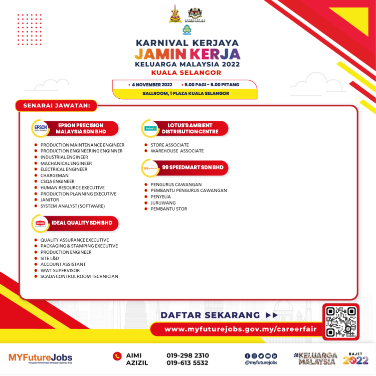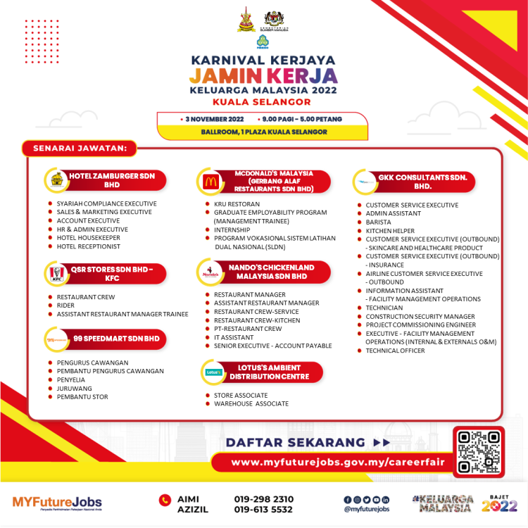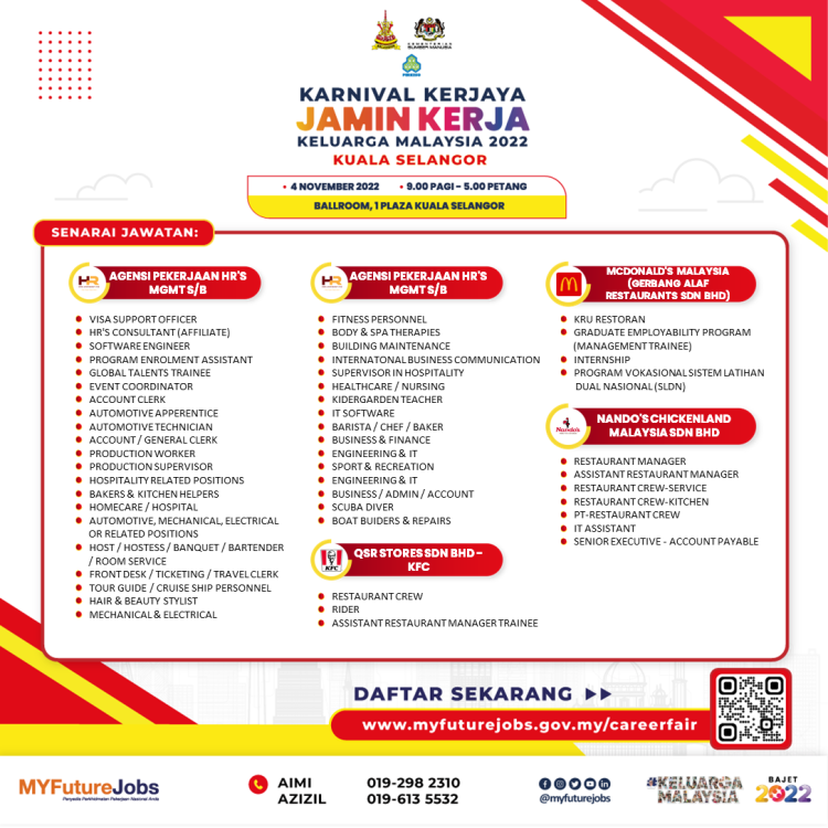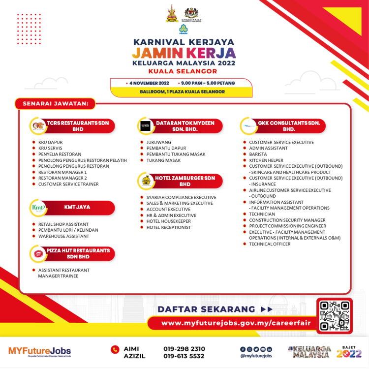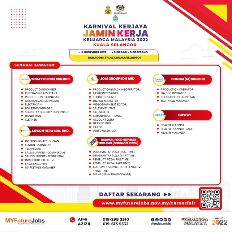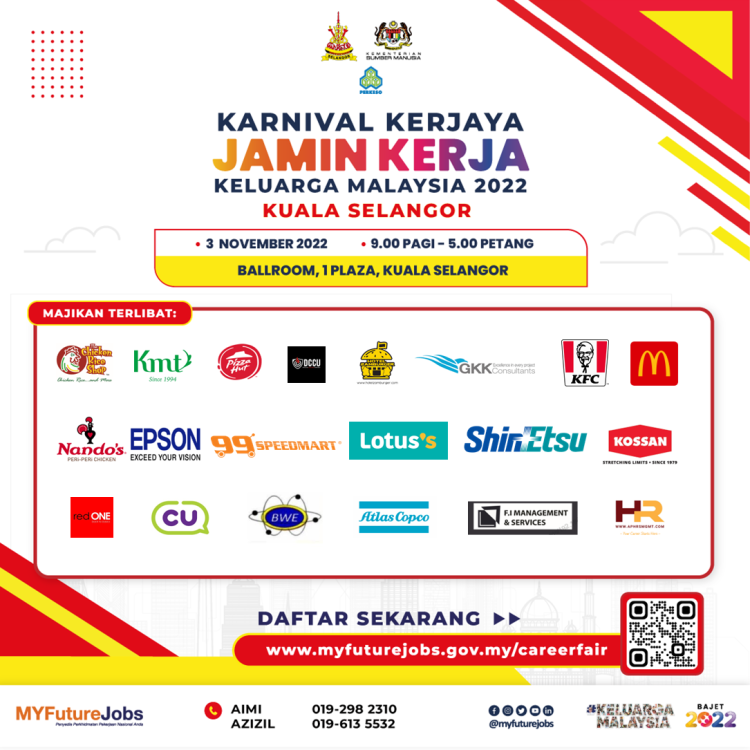 Untuk maklumat lanjut atau sebarang pertanyaan berkenaan Ekspo Kerjaya Jamin Kerja Keluarga Malaysia, anda boleh hubungi pegawai bertugas di talian berikut: