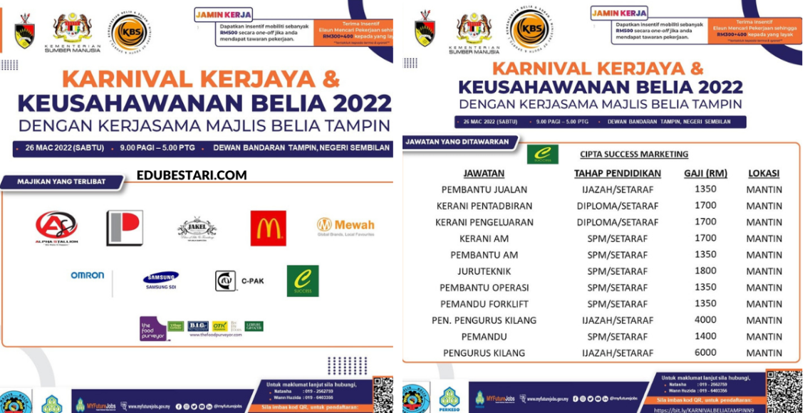 Sekiranya anda berminat untuk sertai, pastikan anda buat pendaftaran sebelum hari temuduga, iaitu 26 Mac 2022. Pencari kerja yang berminat untuk sertai karnival kerjaya tersebut boleh buat pendaftaran melalui pautan berikut: