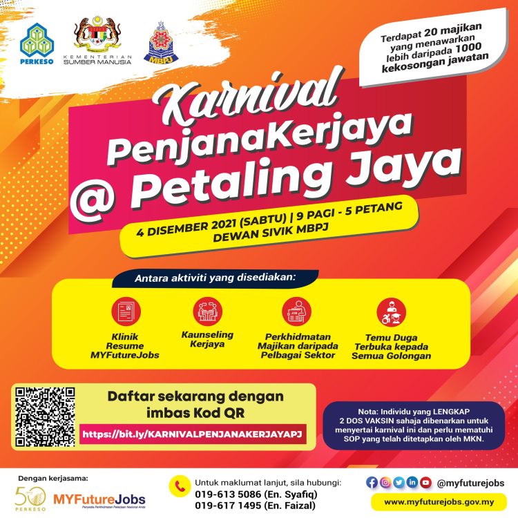 Untuk maklumat lanjut atau sebarang pertanyaan berkenaan Karnival MyFutureJobs Petaling Jaya, anda boleh hubungi: