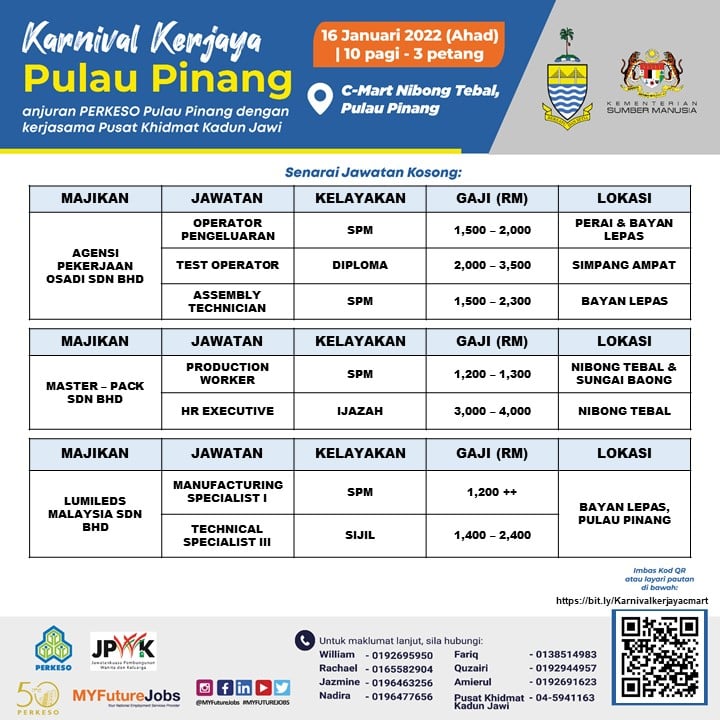 Daftar Temuduga Terbuka Anjuran PERKESO Pulau Pinang, 3,000 Jawatan Kosong Ditawarkan