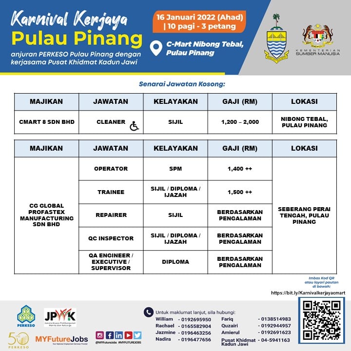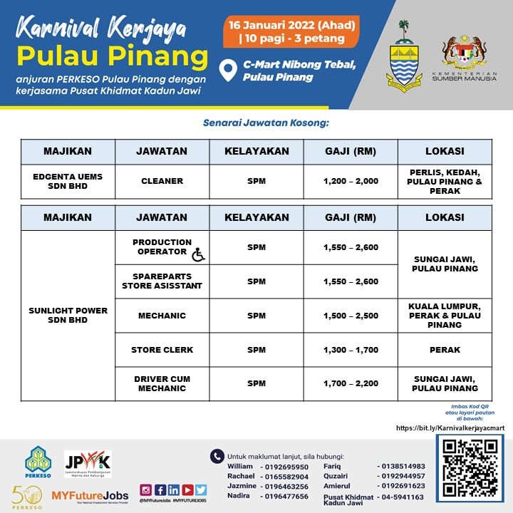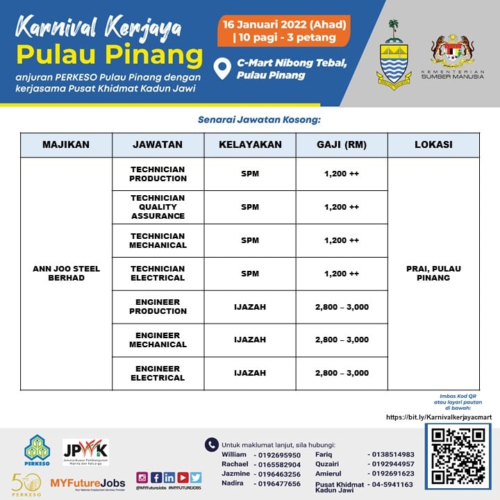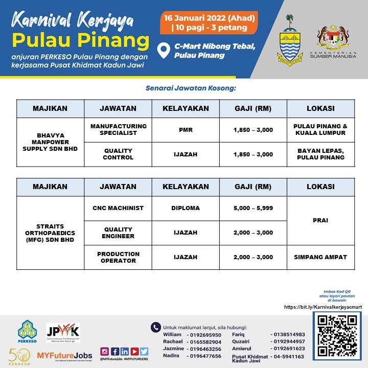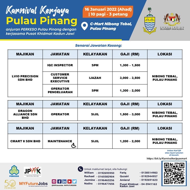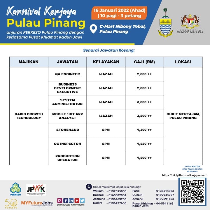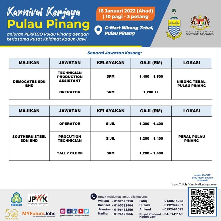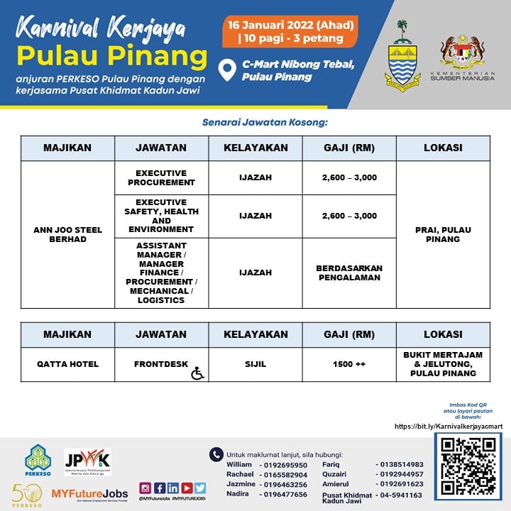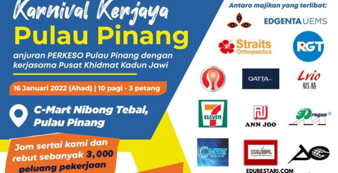 Pencari kerja yang berminat nak ikuti karnival kerjaya Pulau Pinang ini boleh buat pra-pendaftaran terlebih dahulu sebelum tarikh temuduga. Sebanyak 3,000 kekosongan jawatan untuk diisi, jangan lepaskan peluang ini!