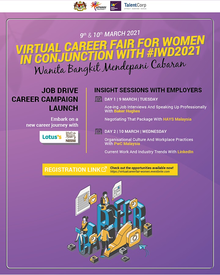 Ikuti perkongsian di bawah untuk maklumat lanjut pendaftaran Karnival Kerjaya Wanita.