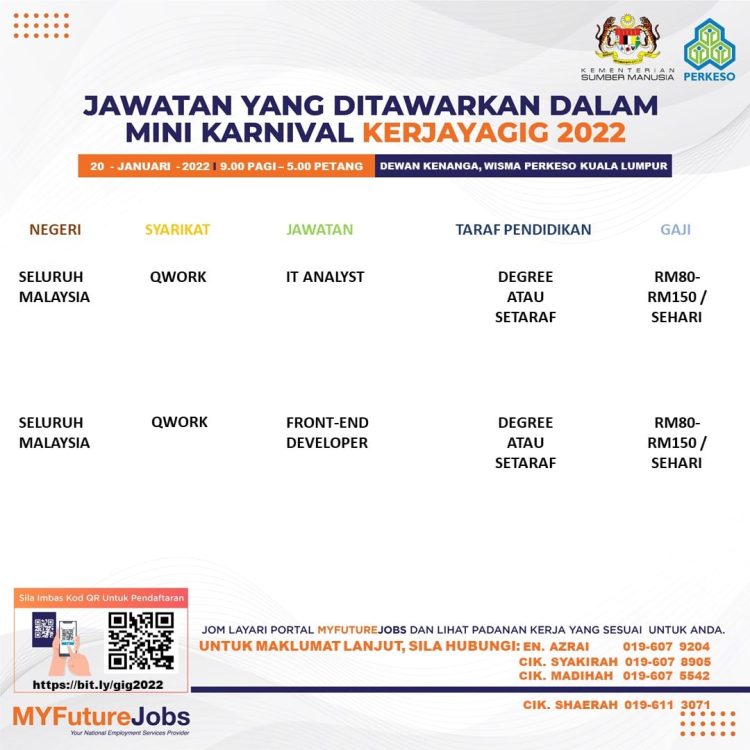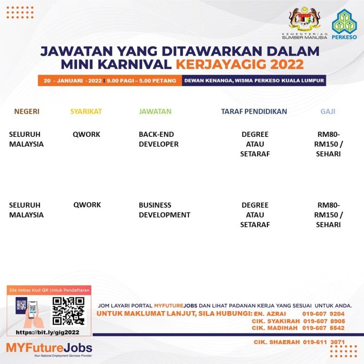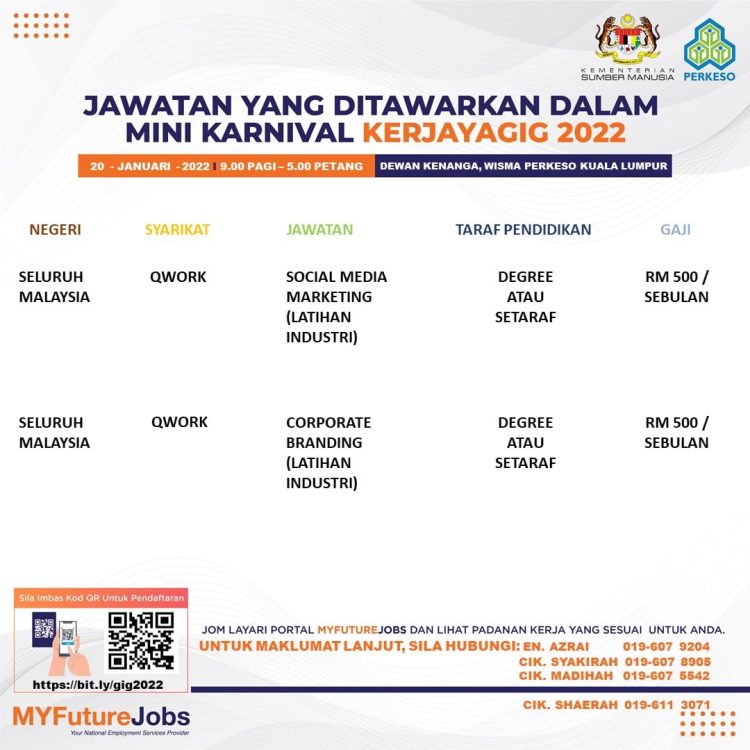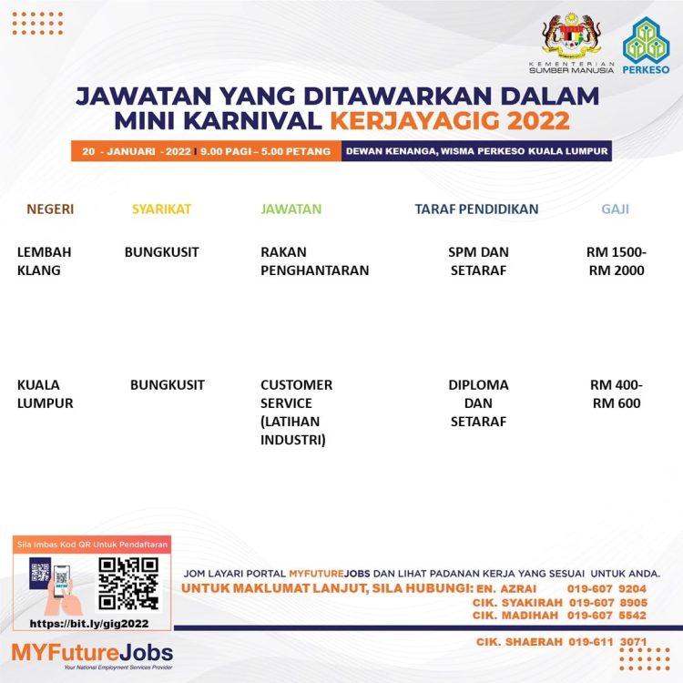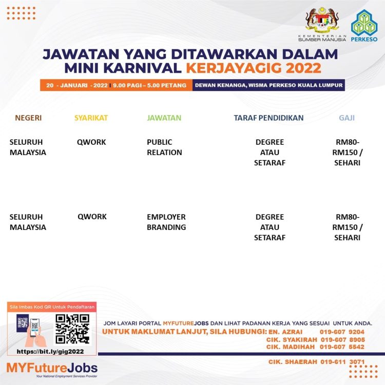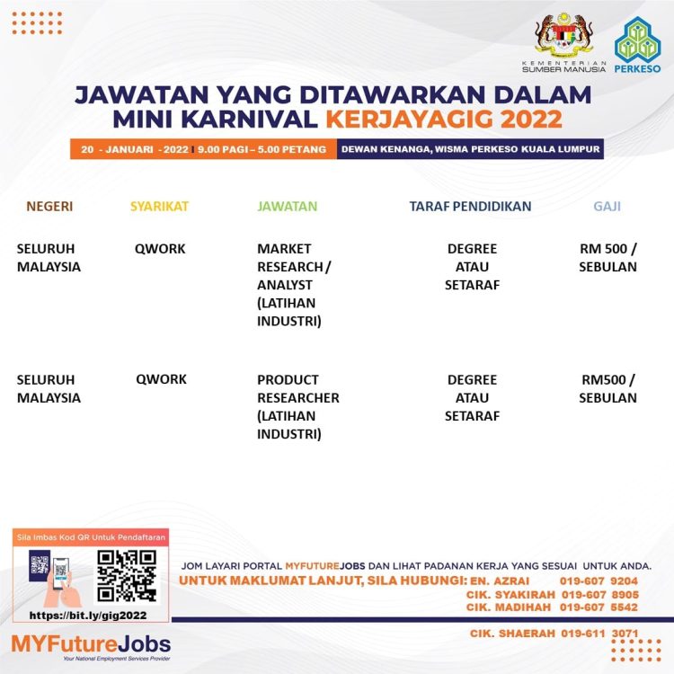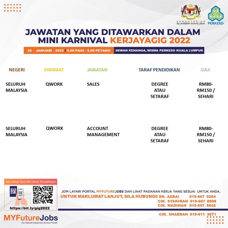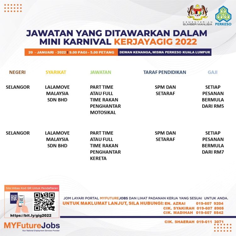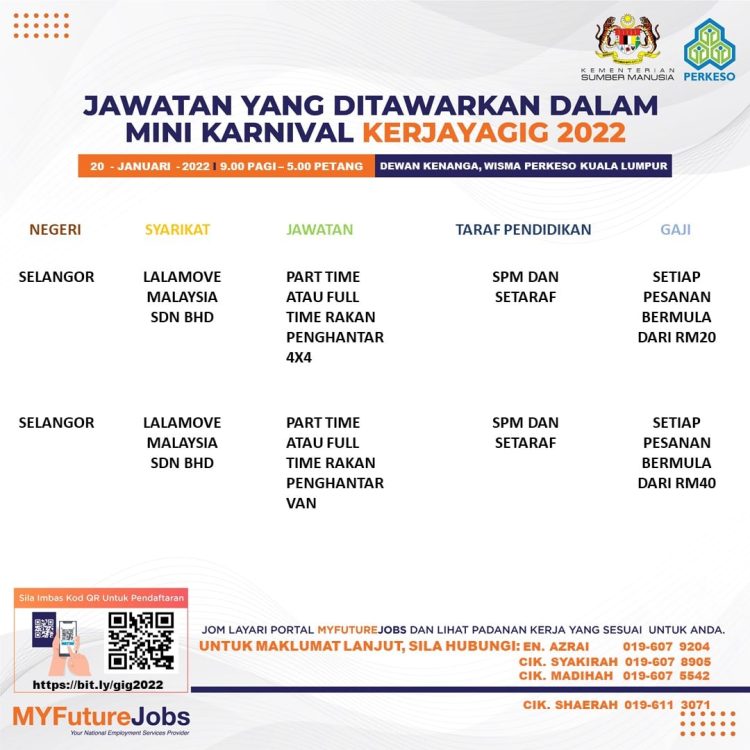 Sekiranya anda berminat untuk sertai karnival yang akan berlangsung pada 20 Januari 2022 dan memerlukan pekerjaan yang ditawarkan, anda boleh buat pendaftaran bagi menyertai Mini Karnival KerjayaGig 2022.