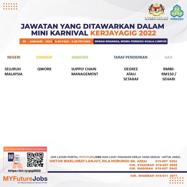 Untuk mengetahui penerangan tugasan, calon boleh terus ke PAUTAN INI. Sekiranya anda ada sebarang pertanyaan, anda boleh hubungi atau WhatsApp En. Azrai di talian 019 607 6204 atau emel ke alamat azraifitri.aziz@perkeso.gov.my.