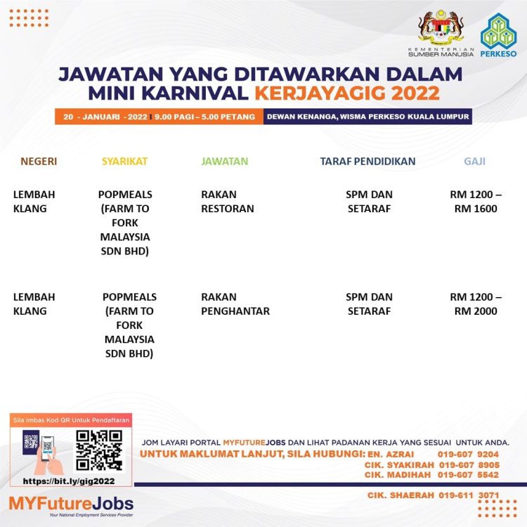Bagi yang berminat, anda boleh dapatkan maklumat lanjut program yang akan dilaksanakan dan semak senarai jawatan ditawarkan di perkongsian bawah. Pastikan anda buat pendaftaran sebelum hadir ya!