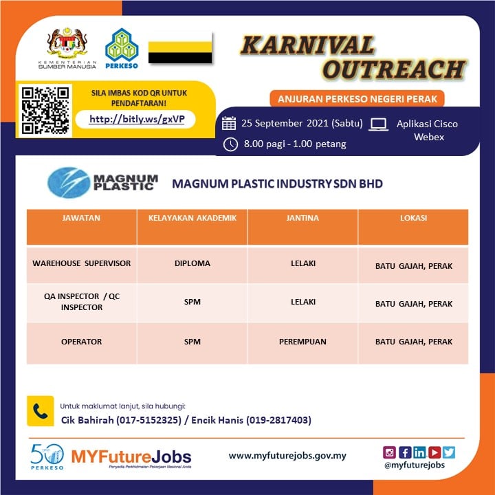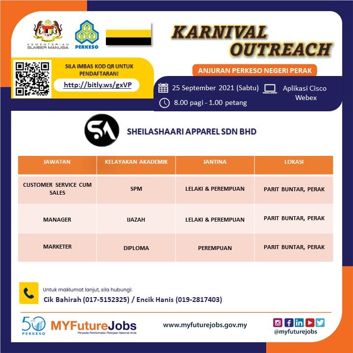 Untuk maklumat lanjut atau sebarang pertanyaan, anda boleh hubungi 019-2817403 (Hanis Halim) atau 017-5152325 (Cik Bahirah).