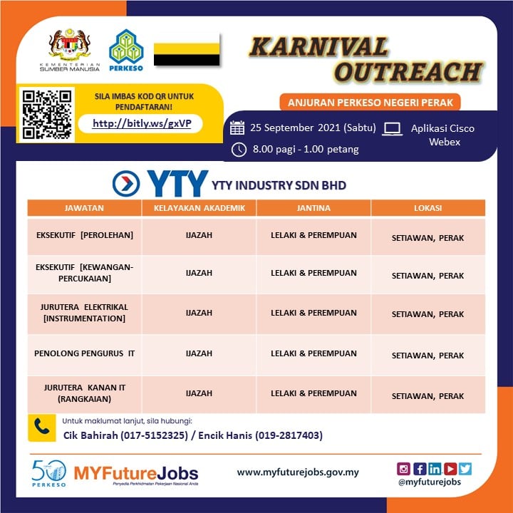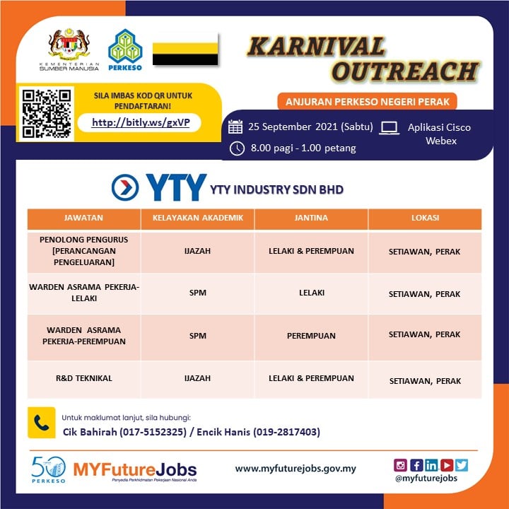 Graduan yang berminat nak ikuti karnival kerjaya secara atas talian ini boleh buat pra-pendaftaran terlebih dahulu sebelum 24 September 2021. Calon yang disenarai pendek akan dipanggil untuk temuduga pada 25 September 2021 (Sabtu).