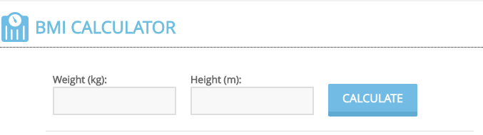 - Masukkan berat badan anda (kg) dan tinggi (m). Klik CALCULATE untuk buat pengiraan BMI