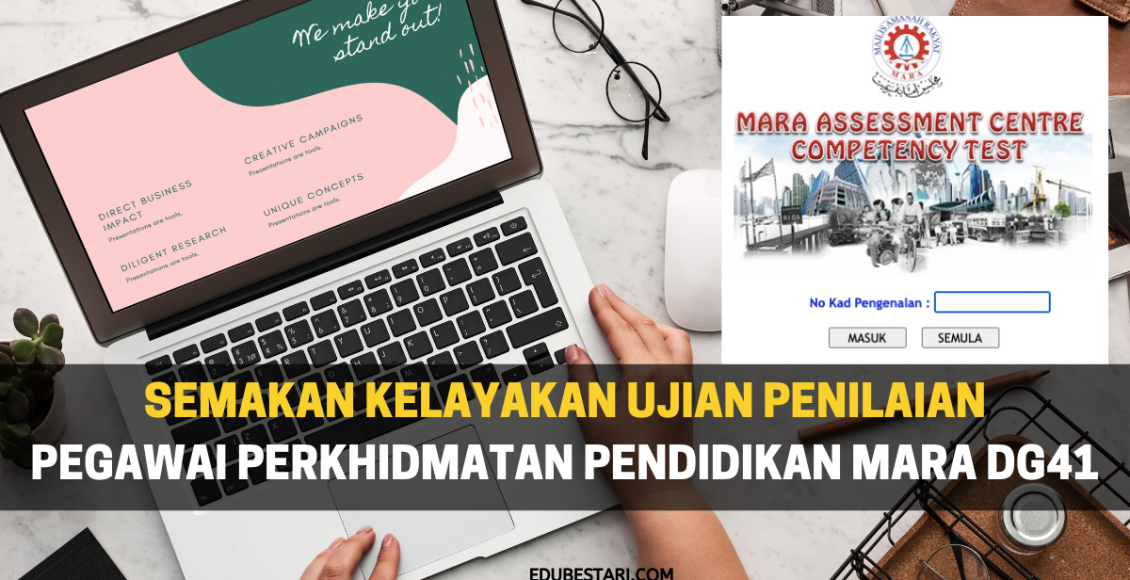 Semakan kelayakan menduduki ujian penilaian Pegawai Perkhidmatan Pendidikan MARA Gred DG41 boleh dibuat pada: