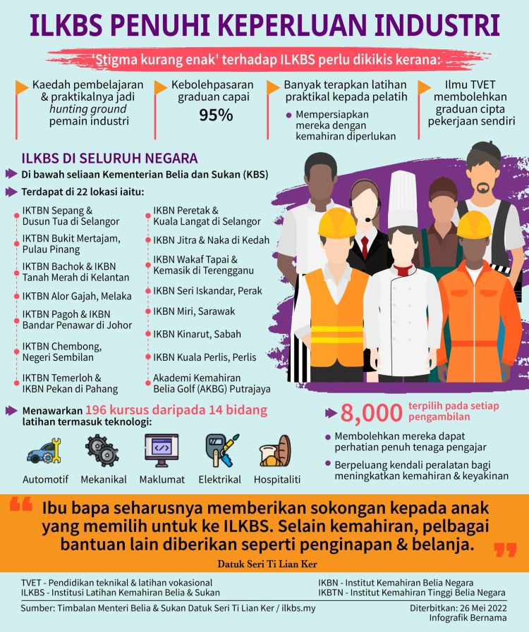 Masyarakat khususnya ibu bapa perlu membuang ‘stigma kurang enak’ terhadap Institusi Latihan Kemahiran Belia dan Sukan (ILKBS) kerana kaedah pembelajaran secara amali dan praktikal yang ditawarkan adalah memenuhi keperluan industri.