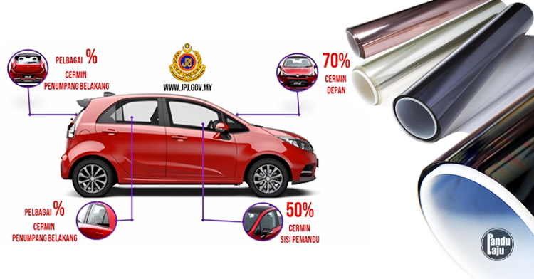 *Dengan syarat kenderaan itu dilengkapi dengan cermin pemantul kanan & kiri - Cermin sisi penumpang: Dibenarkan gelap sepenuhnya