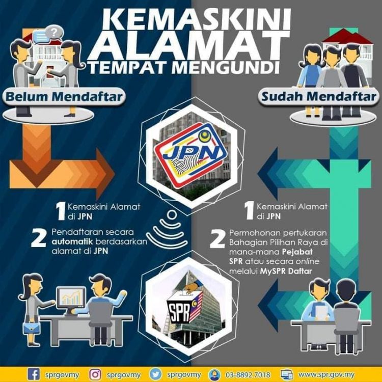 Ikuti perkongsian di bawah untuk semak syarat pendaftaran mengundi dan panduan kemaskini alamat mengundi bagi yang dah daftar.