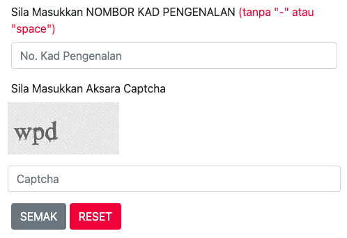 - Masukkan nombor kad pengenalan, aksara yang dipaparkan dan klik SEMAK