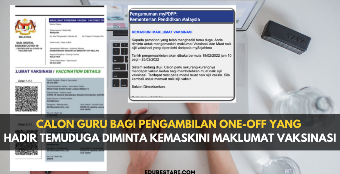 Ikuti perkongsian di bawah untuk maklumat lanjut pengemaskinian maklumat vaksinasi bagi calon guru pengambilan secara one-off yang telah hadir temuduga.