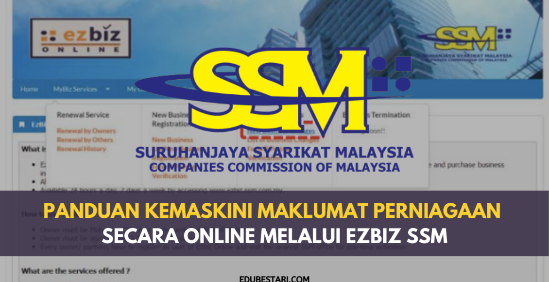 Untuk maklumat lanjut dan pertanyaan mengenai cara kemaskini maklumat perniagaan menggunakan ezBiz, anda boleh layari Portal SSM online di https://ezbizzonline.com/.